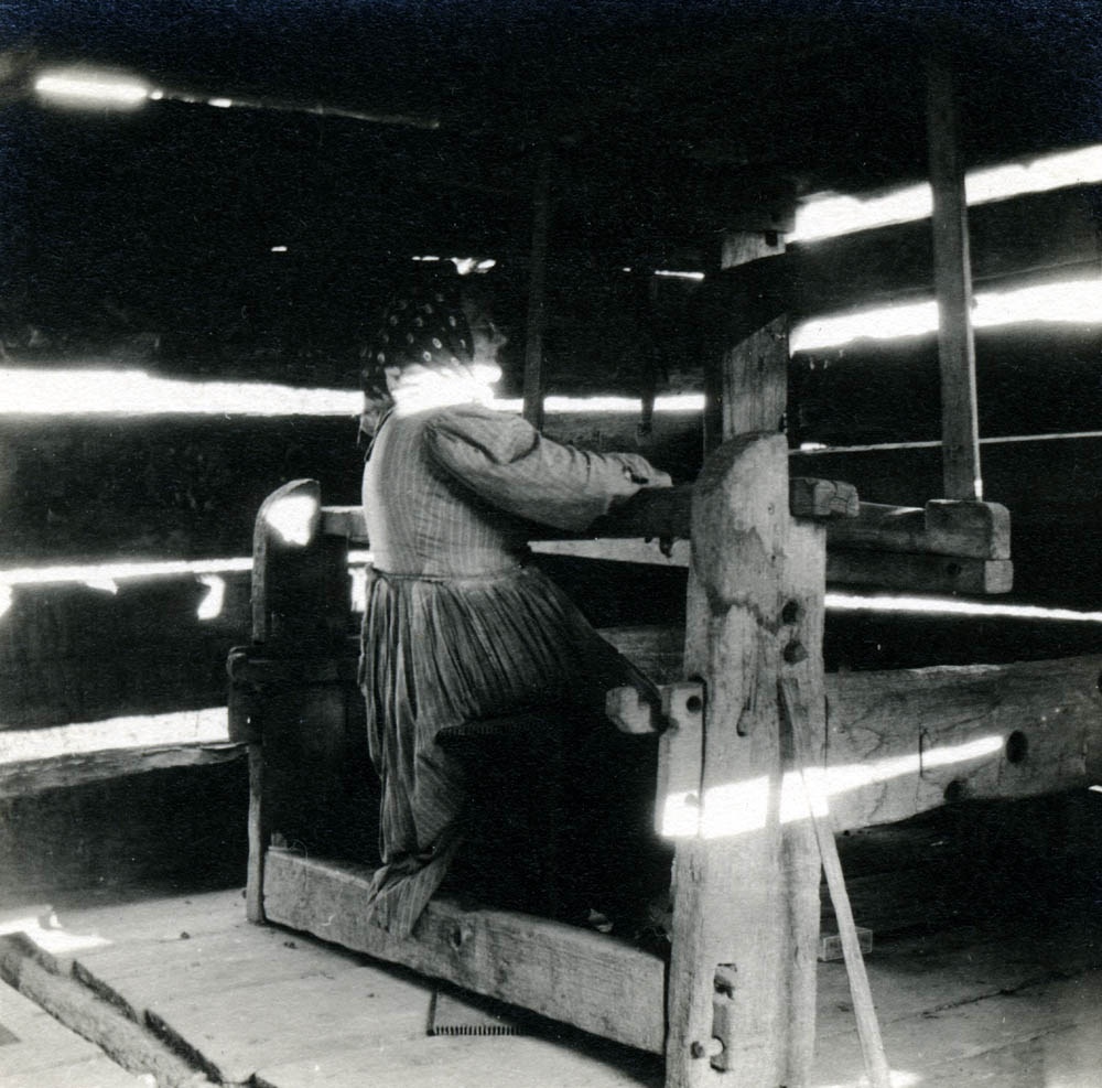 TAGS: VI 37 FRIENDS & NEIGHBORS Creech Family, photographs, Berea (KY) College, Aunt Sally Creech; Aunt Sal; Aunt Bet Creech Scott; Henry Creech; William Creech; Aunt Leah Smith; Rhoda Creech Wilder; Kermit Wilder; Ethel de Long Zande; Big Log; weaving; spinning; flax; wool;
