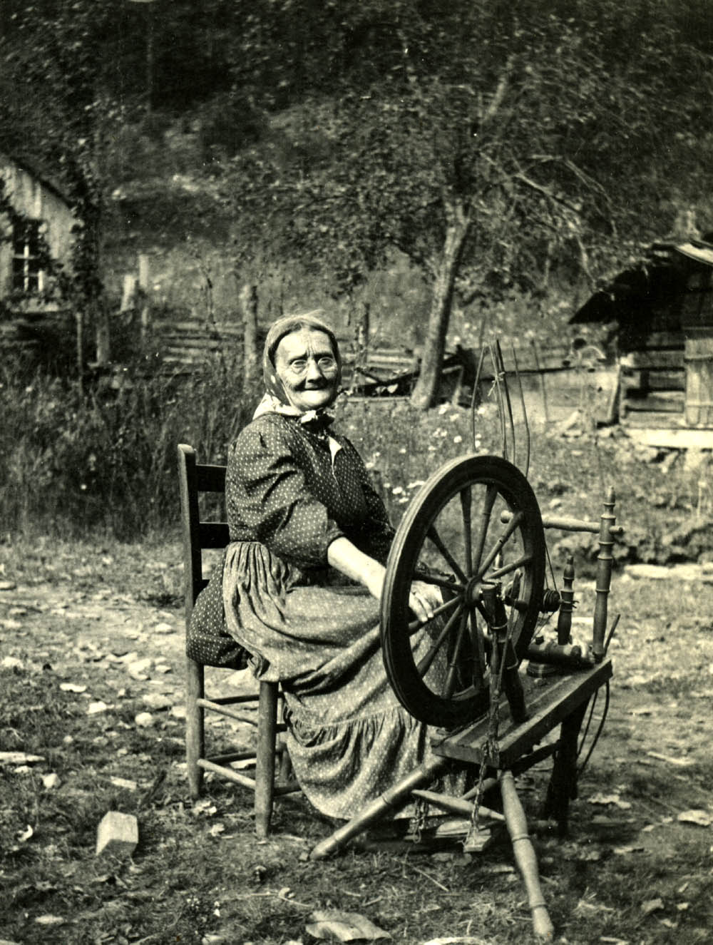 - Aunt Sal spinning at the small wheel to right. [Vl_37_1197a.jpg]