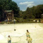 - Swimming Pool. Cleaning and repairing pool, c. 1970s.
