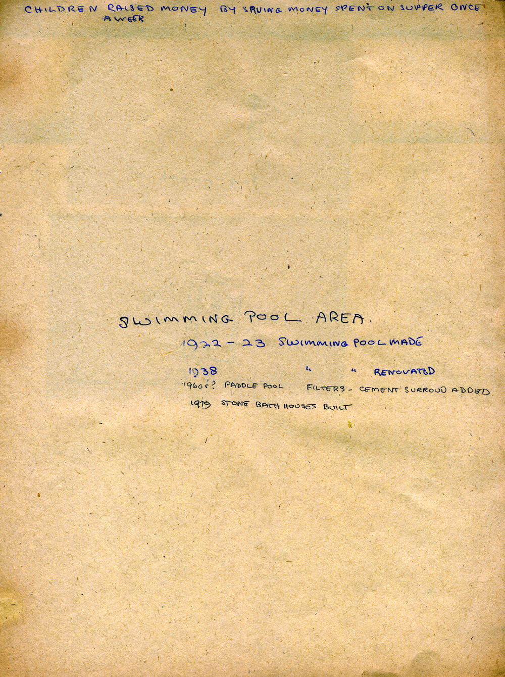 Swimming Pool constructed 1923 ; Bath House constructed 1979 ; |