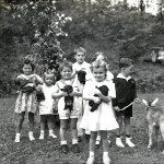 - ‘The young ‘uns.’ Human and otherwise, May 1946. Patsy O’Hearn, Helen Hayes [Wykle], David [Barry], Frank [Barry], and Kathy [Barry], Elizabeth Dodd, Steve Hayes. [nace_1_022a.jpg]