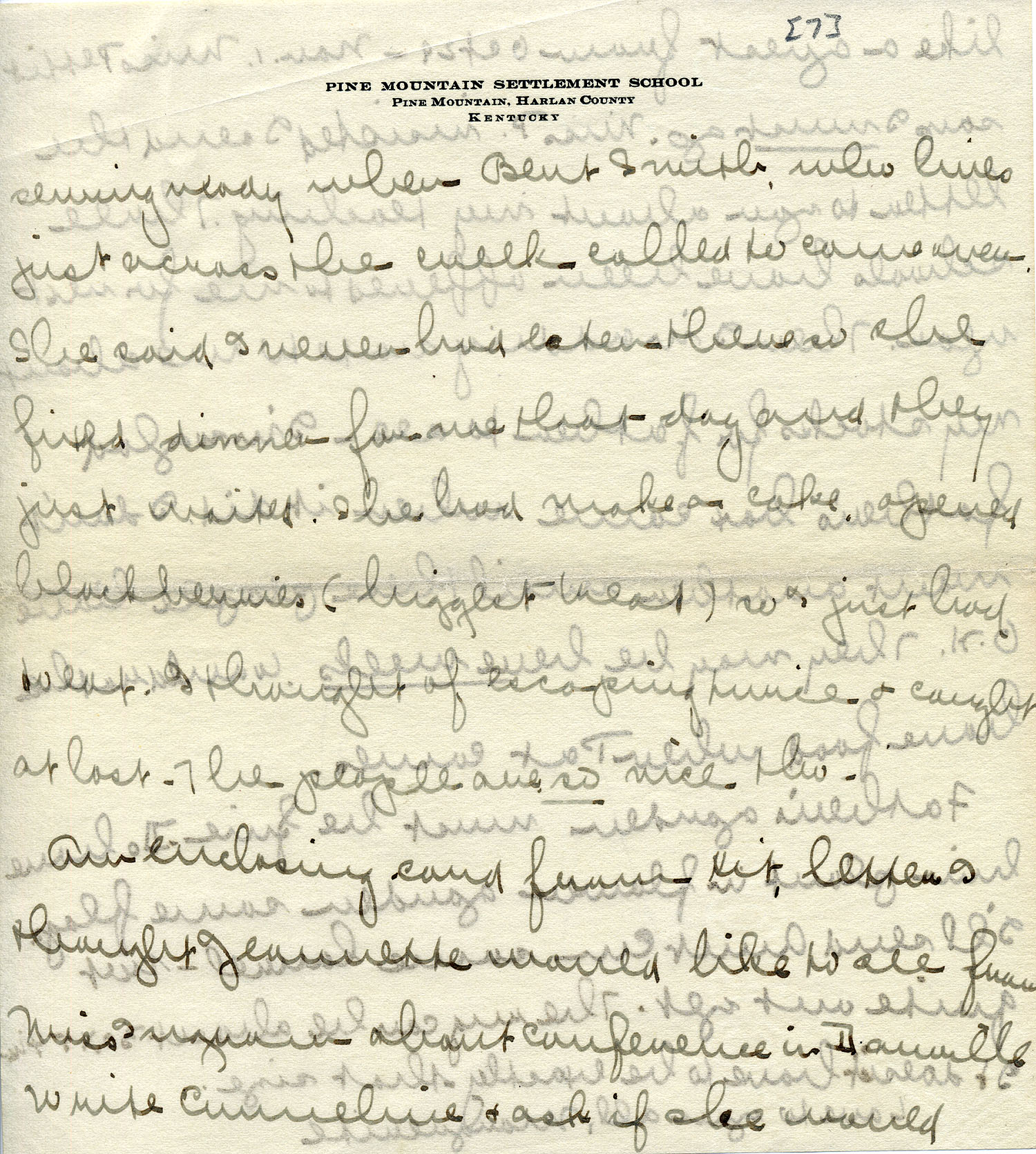 Tomorrow if it is a good day I’m going to Stony Fork to see old Elizabeth Griffith about the deeds I wrote you about. Miss Sandstrom is going with me and we will take turns riding, cooking our lunch on top of the mountain. It is a hard day’s trip.