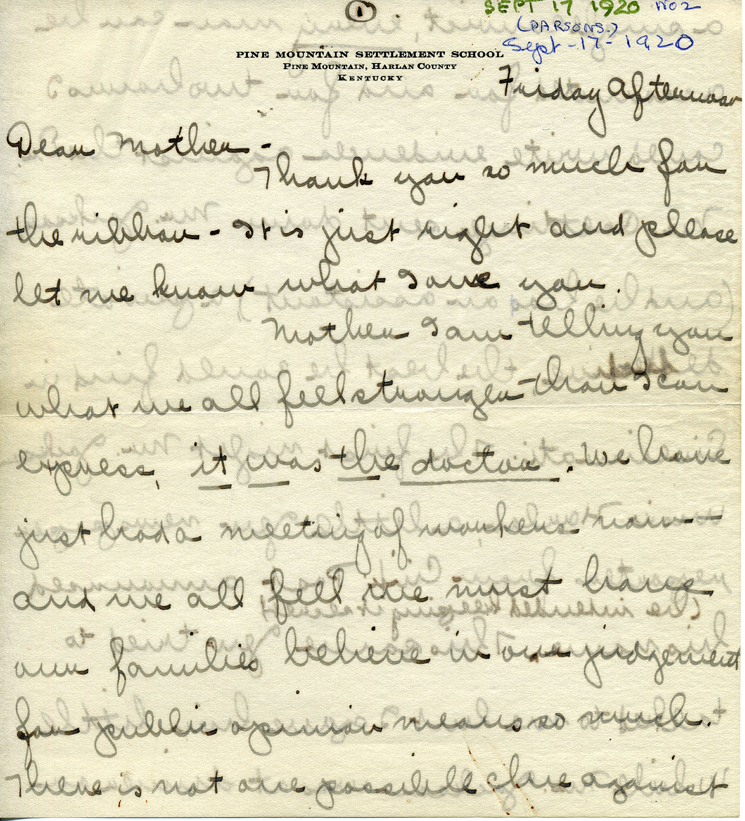 10. LETTER 10 – Sept 17, 1920 (Parsons) – “Dear Mother — Thank you so much for the ribbon. It is just right and please let me know what I owe you….” [images 067-078]