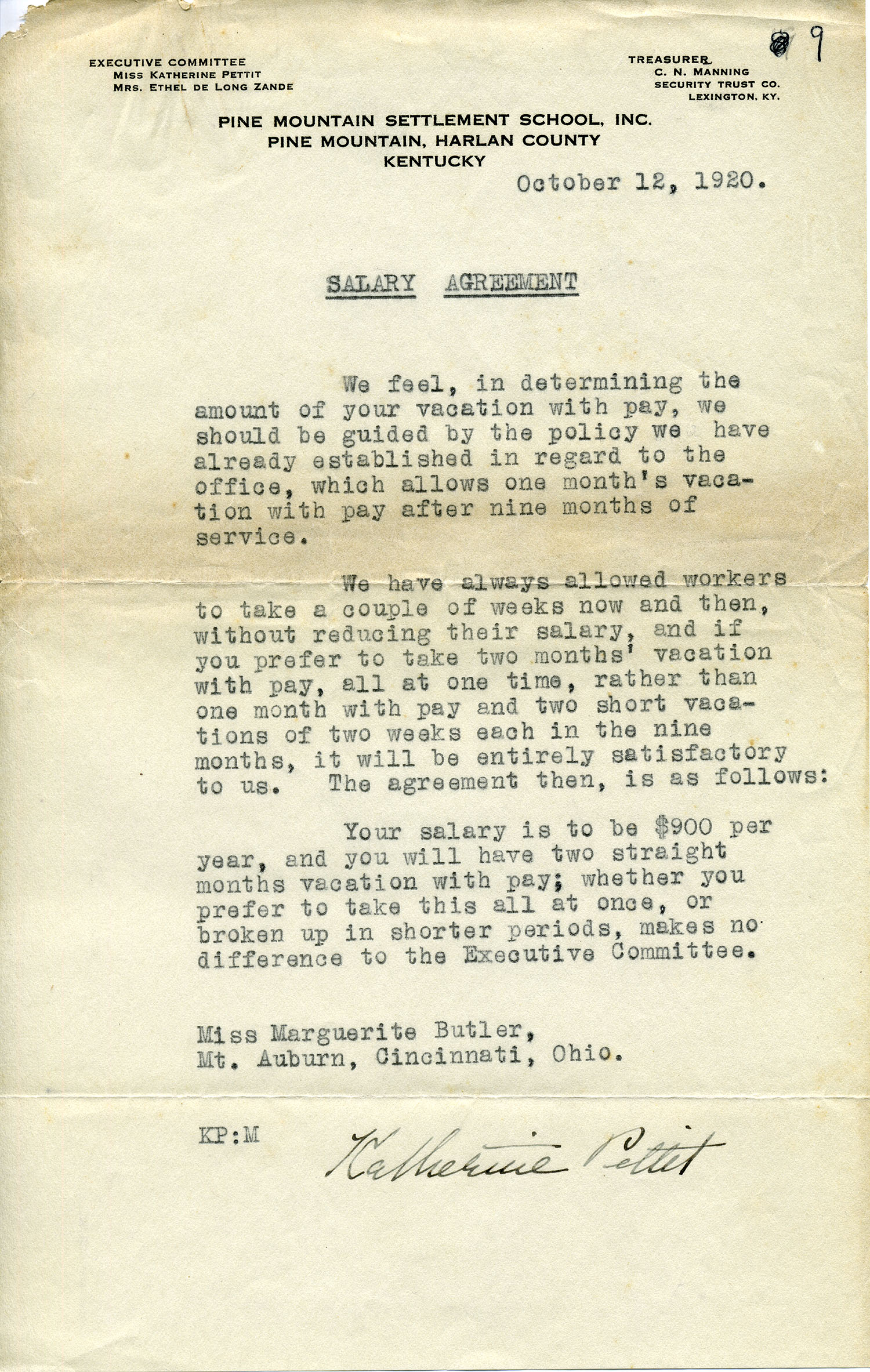 DOCUMENT SIGNED BY K. PETTIT: “October 12, 1920. SALARY AGREEMENT We feel, in determining the amount of your vacation with pay,…” [image 080]