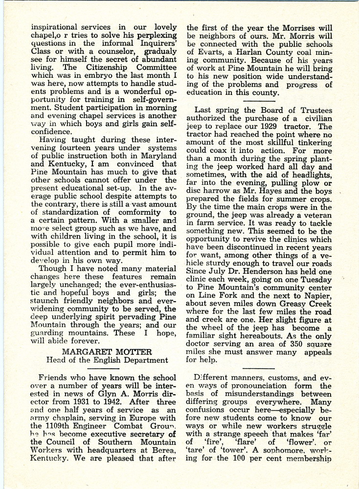 NOTES – 1946 NOVEMBER: Sarah Vitatoe ; poem ; Margaret Motter ; Glyn A. Morris ; Mr. [William] Hayes ; farm jeep ; Dr. Henderson ; Henry Creech ; J.S. Crutchfield ; C.N. Manning ; H.R.S. Benjamin ; linguistics ; farm program ; Creech Memorial Hospital ;