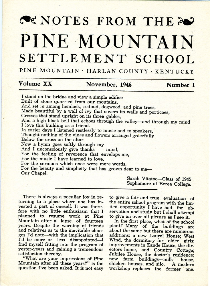 “Notes from the Pine Mountain Settlement School”