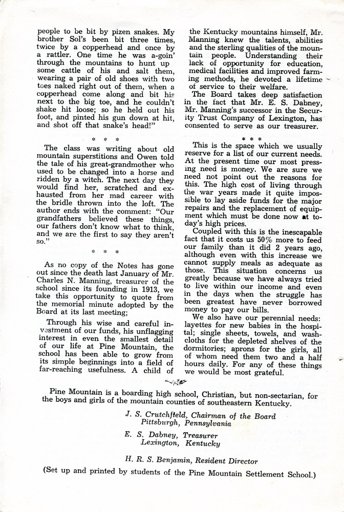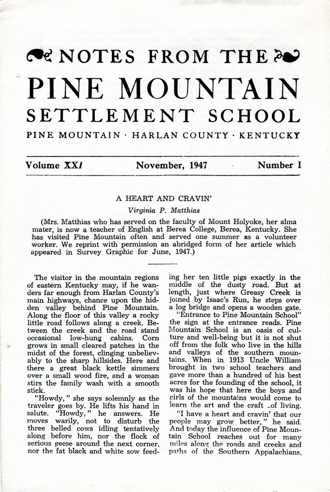 “Notes from the Pine Mountain Settlement School”