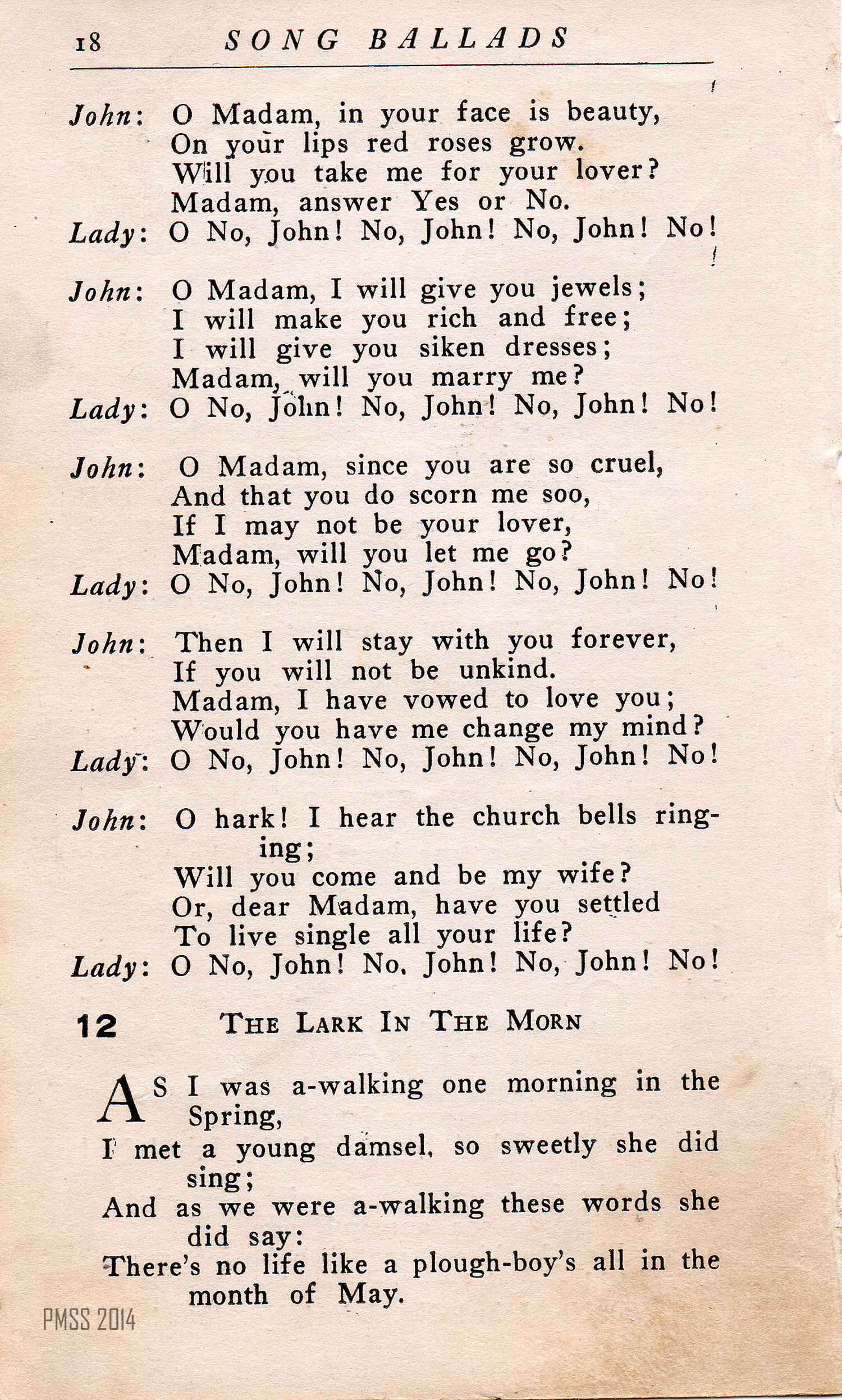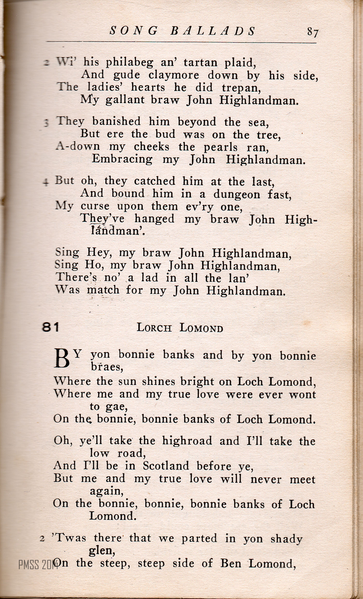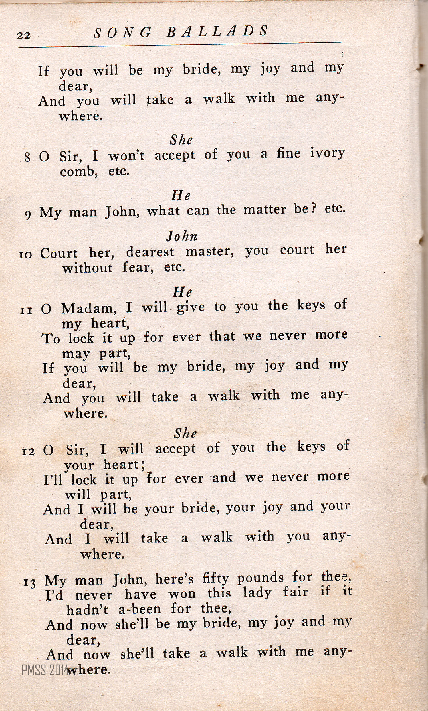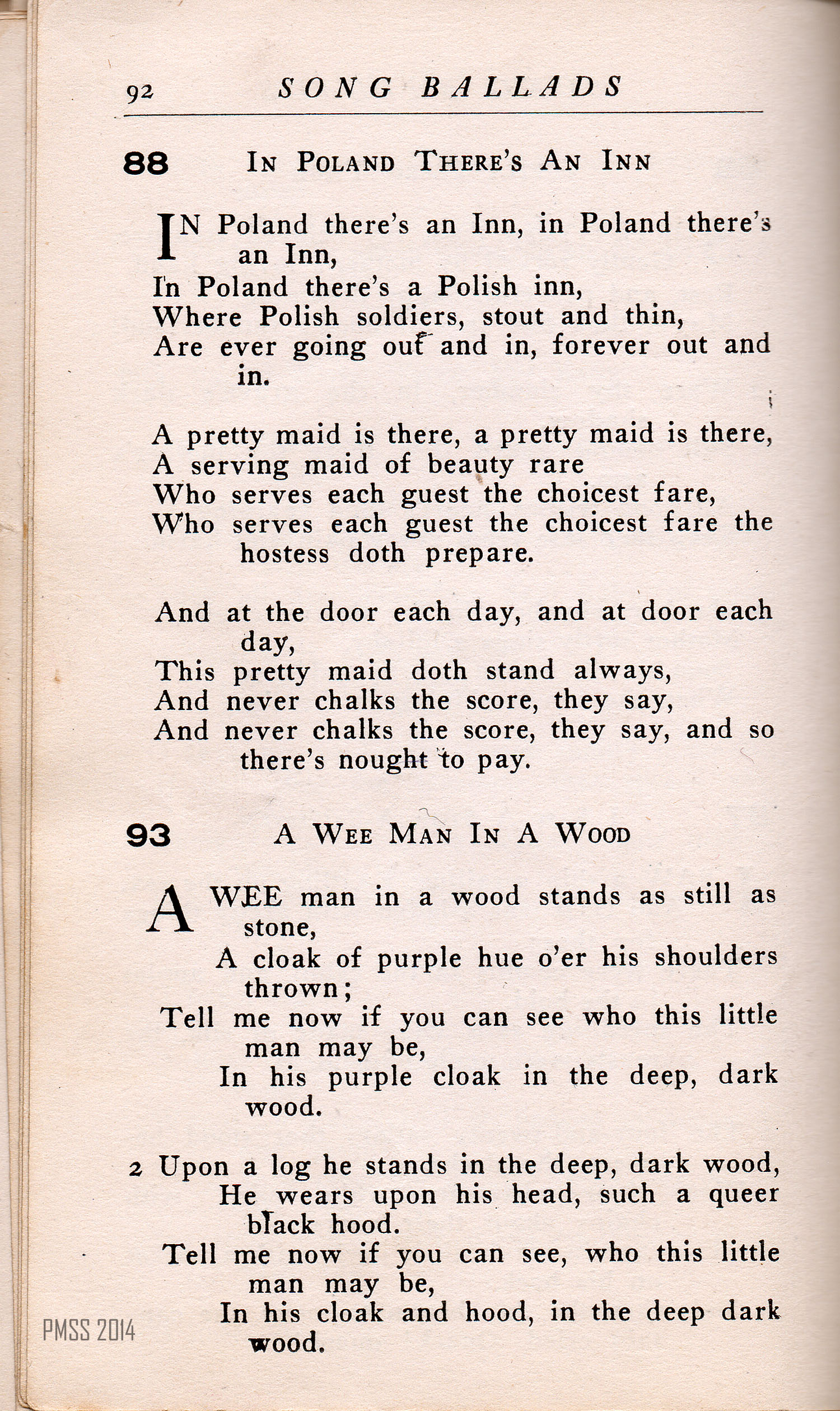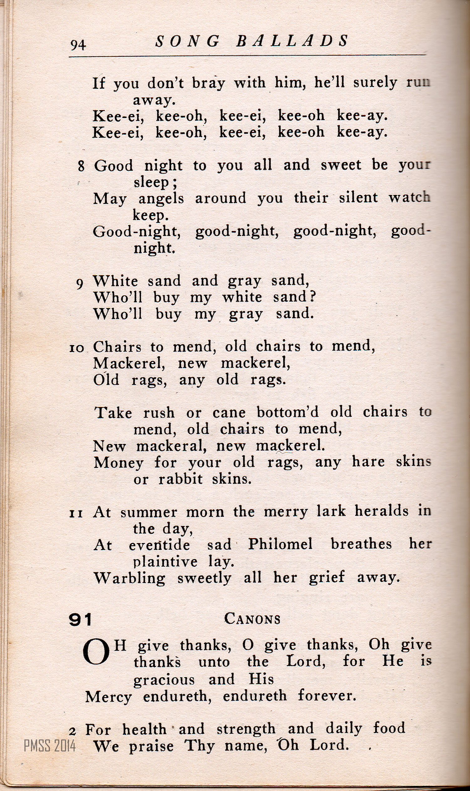 PMSS SONG BALLADS AND OTHER SONGS, 1923