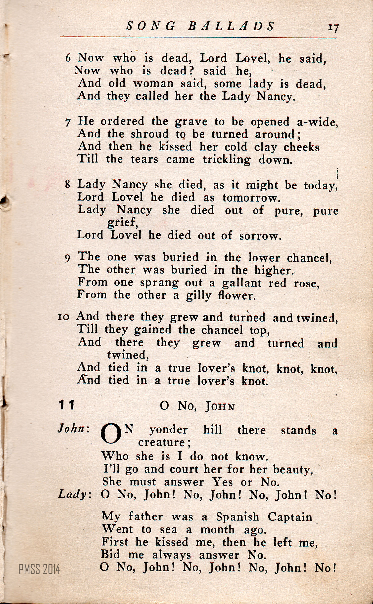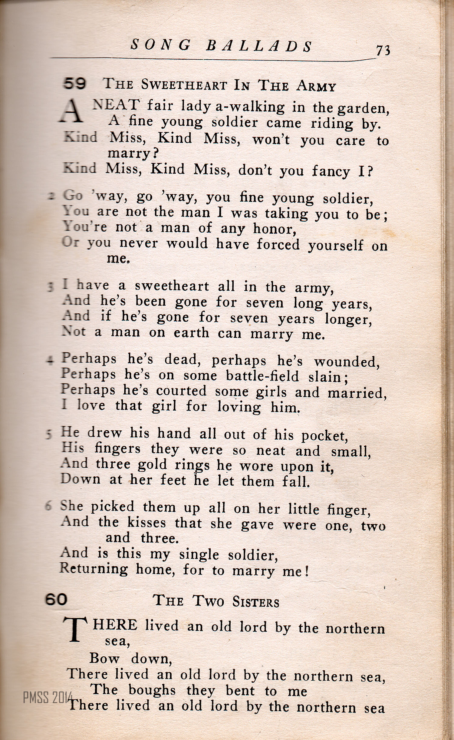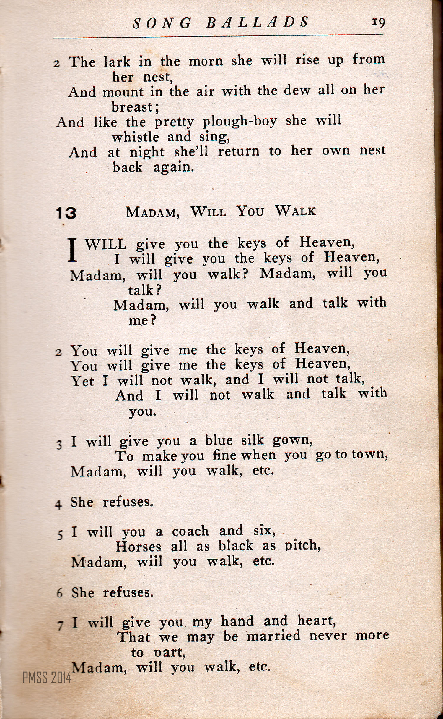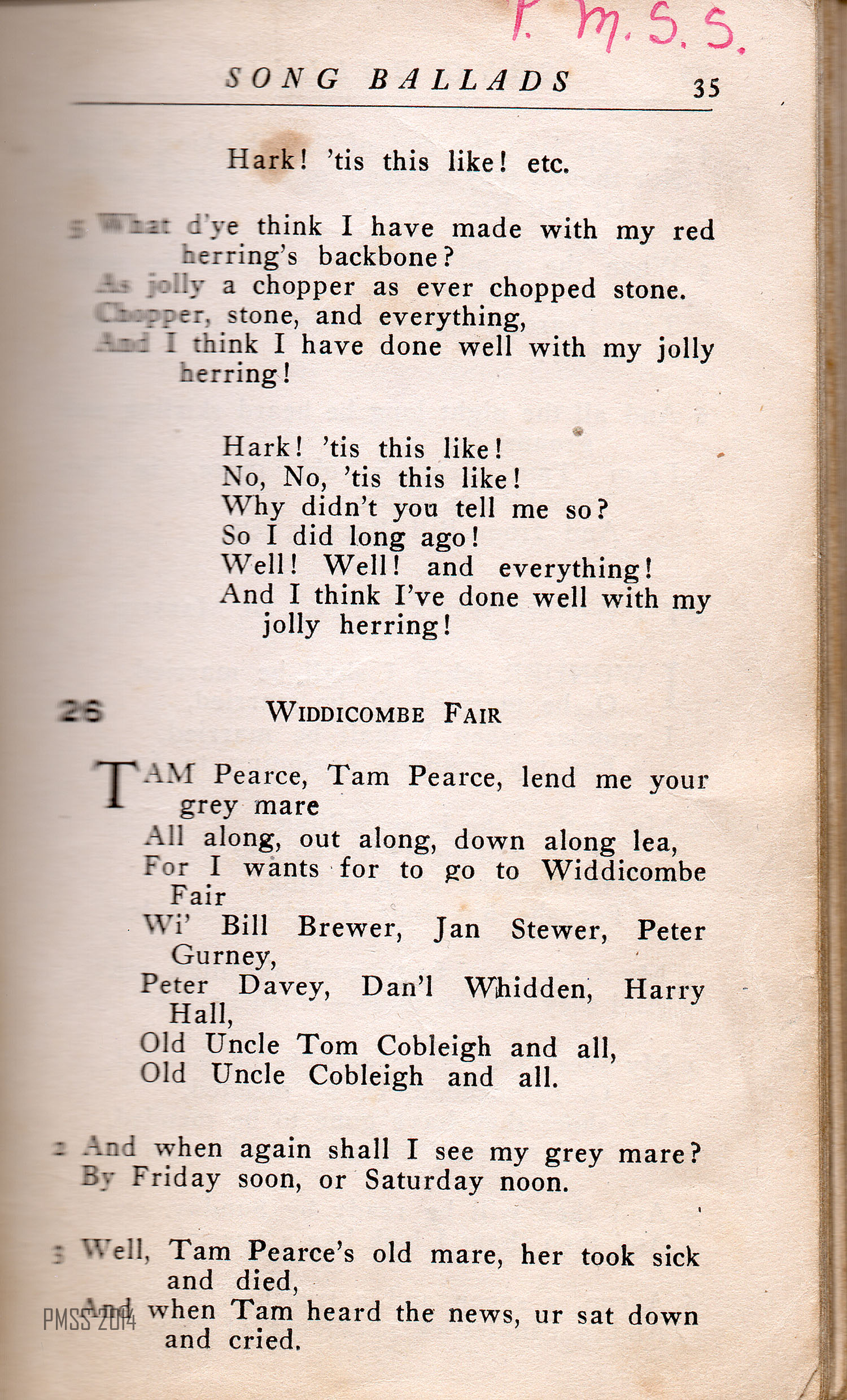 PMSS SONG BALLADS AND OTHER SONGS, 1923