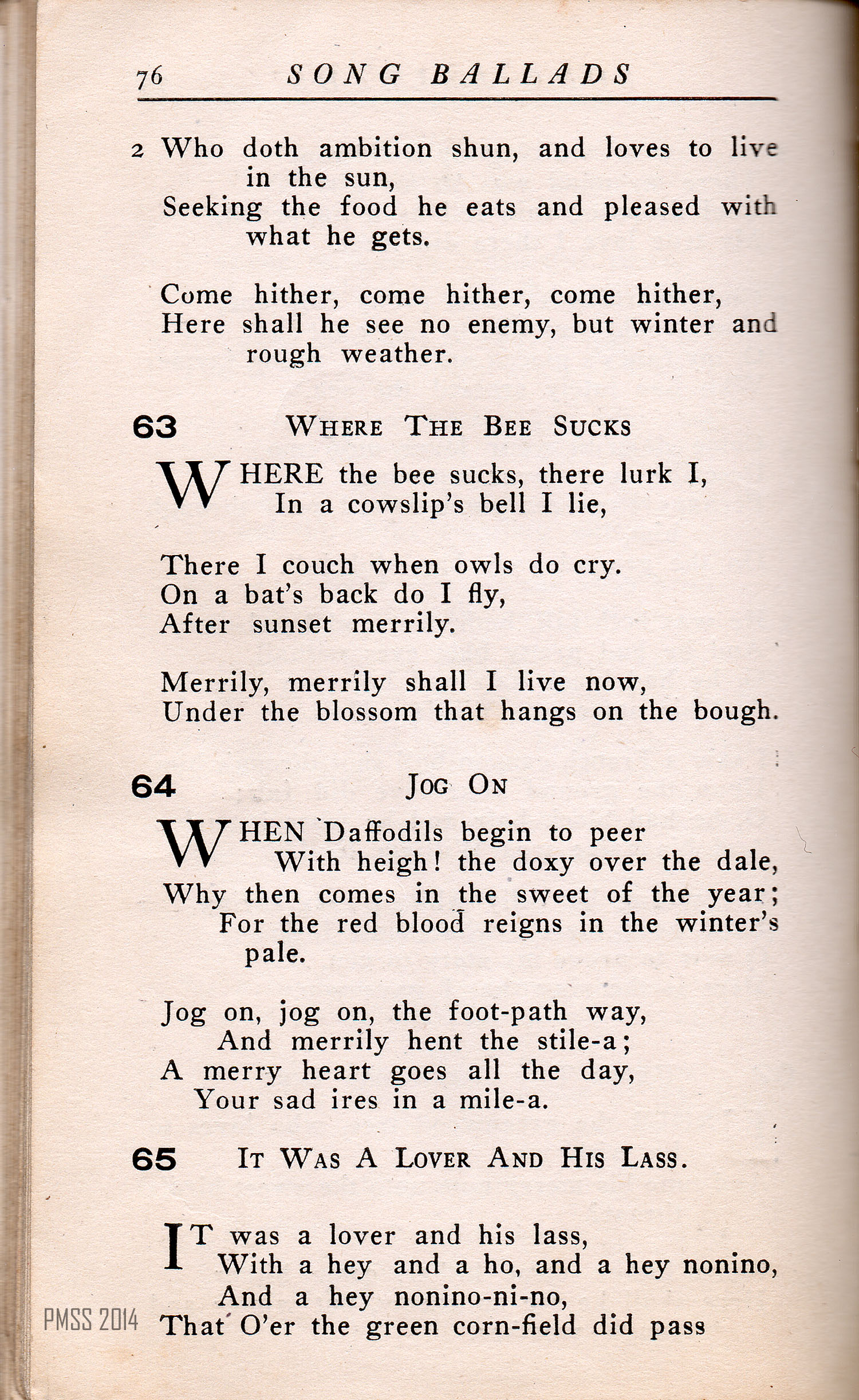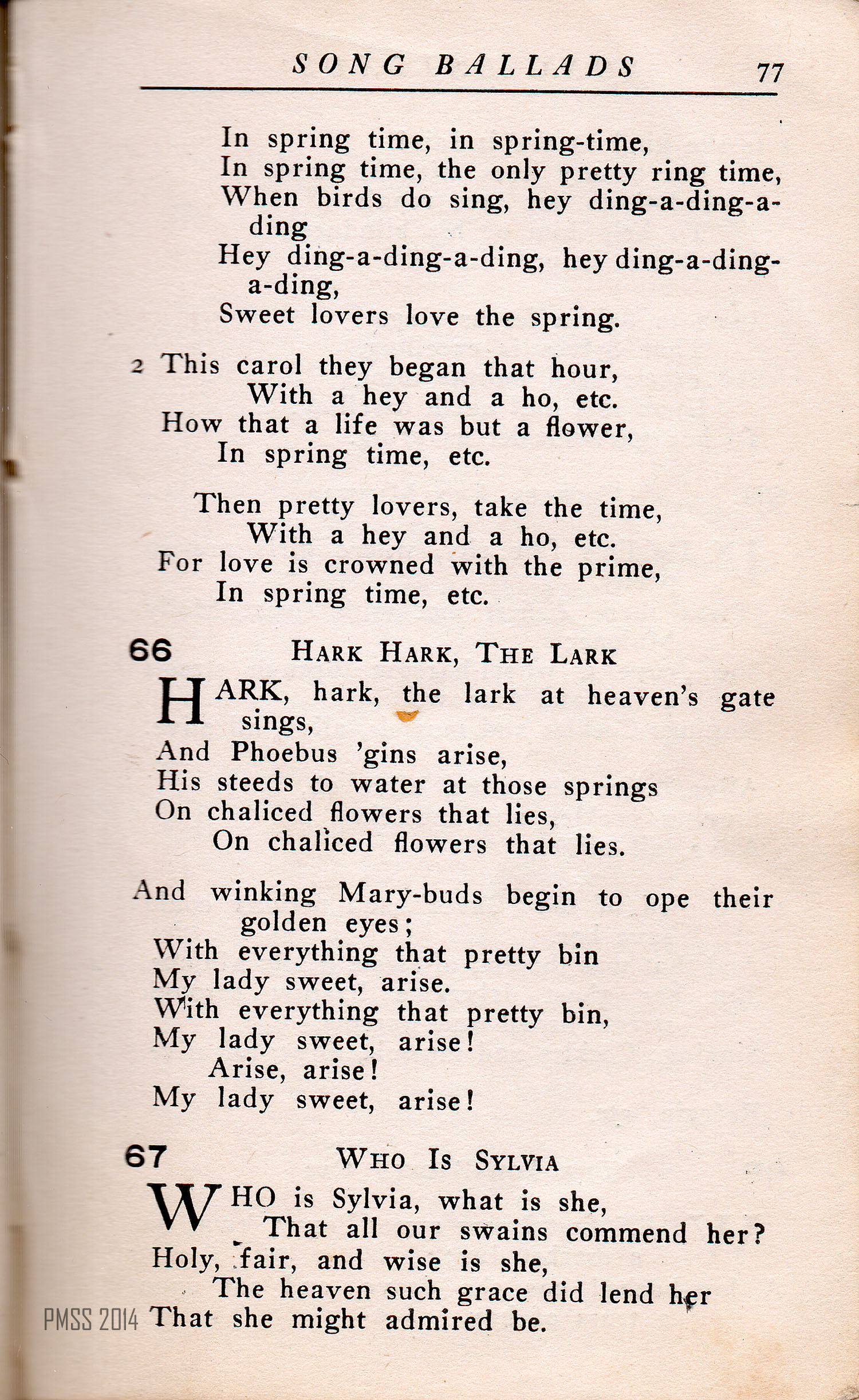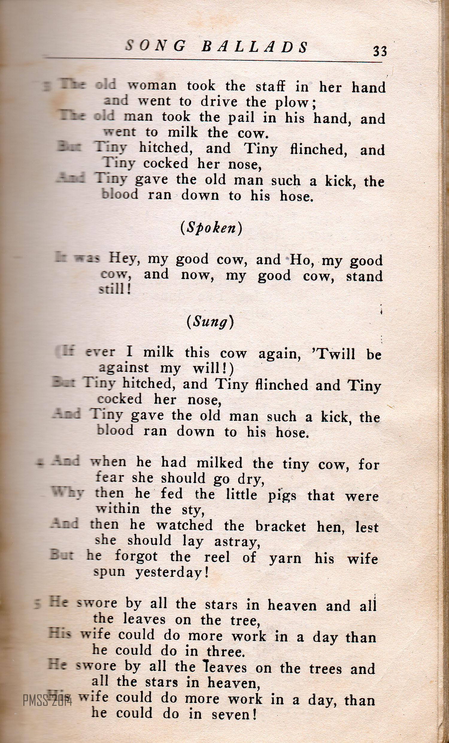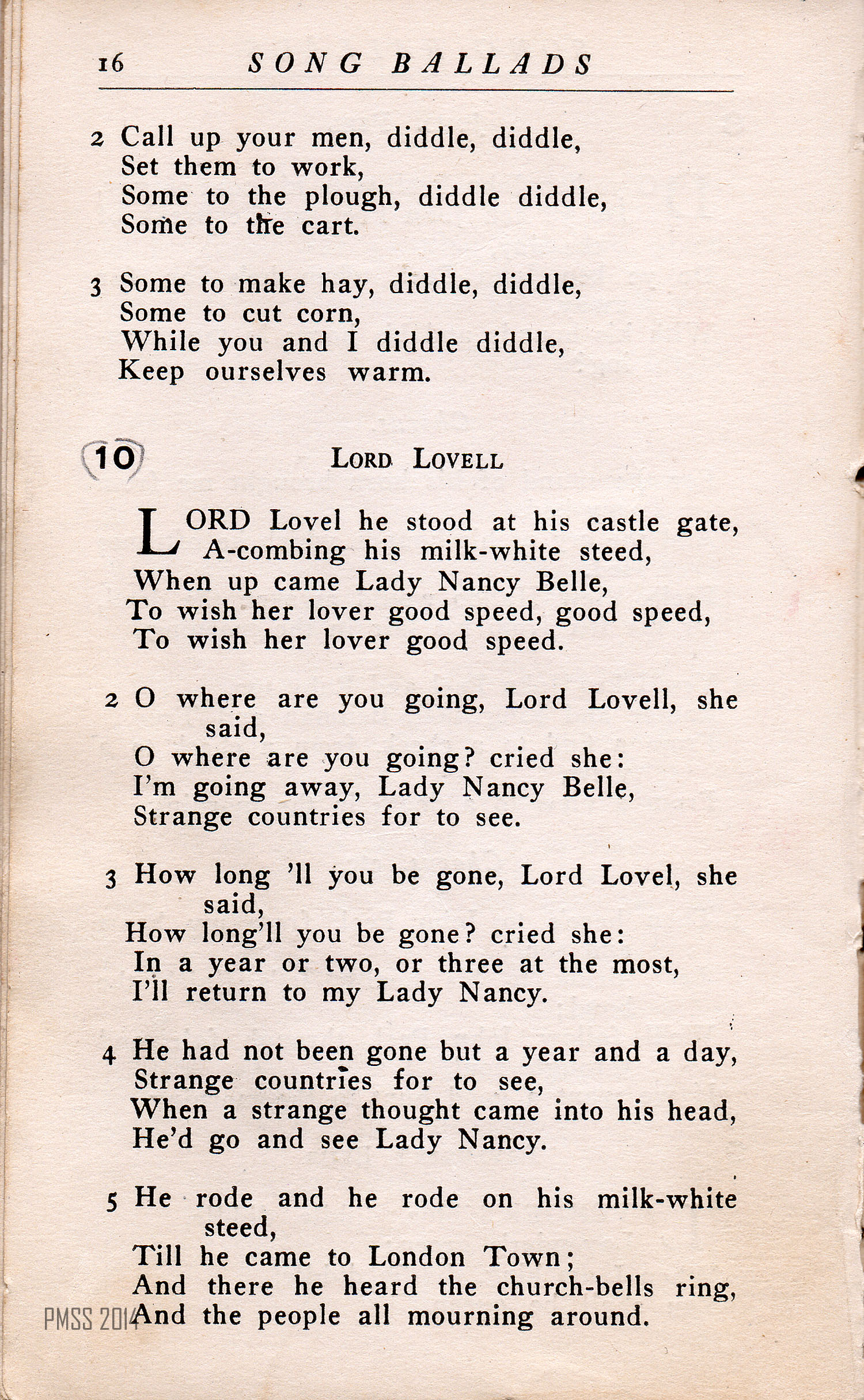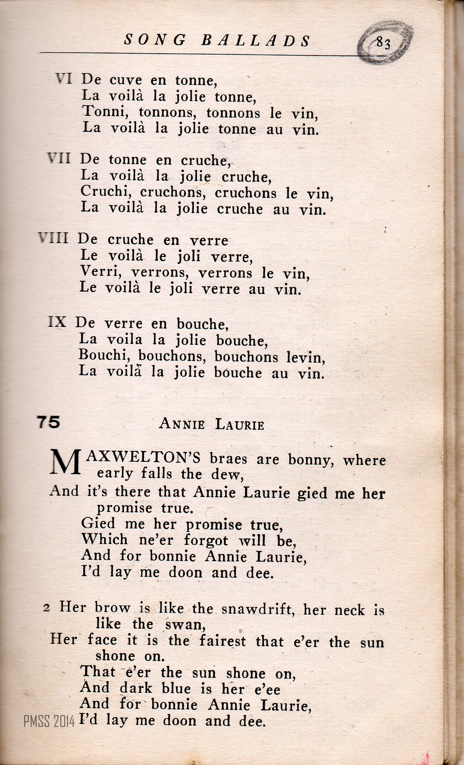 PMSS SONG BALLADS AND OTHER SONGS, 1923
