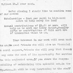 Pupils pay $10 entrance plus $15 a month if they can afford it. In addition, they work for school under supervision. They learn to do by doing. “Better for folkses’ characters to larn them to do things with their hands.” All work of the school is done except mining coal. Children [image 004, page 4] work on 9 weeks’ shifts at various tasks, and thus learn to do many useful things. Attitude toward work? “One thing I don’t like ….”