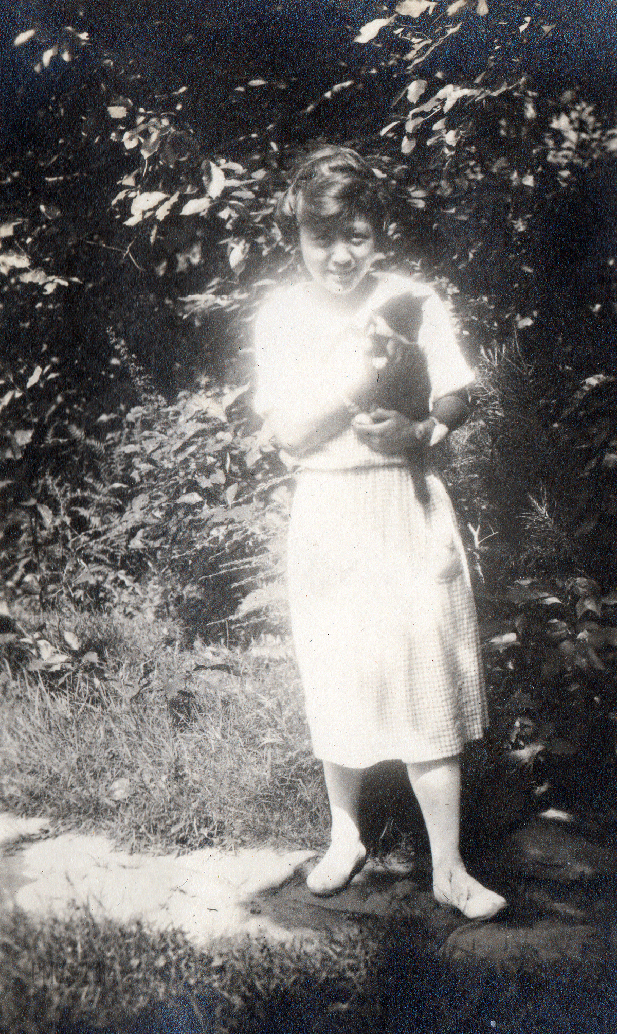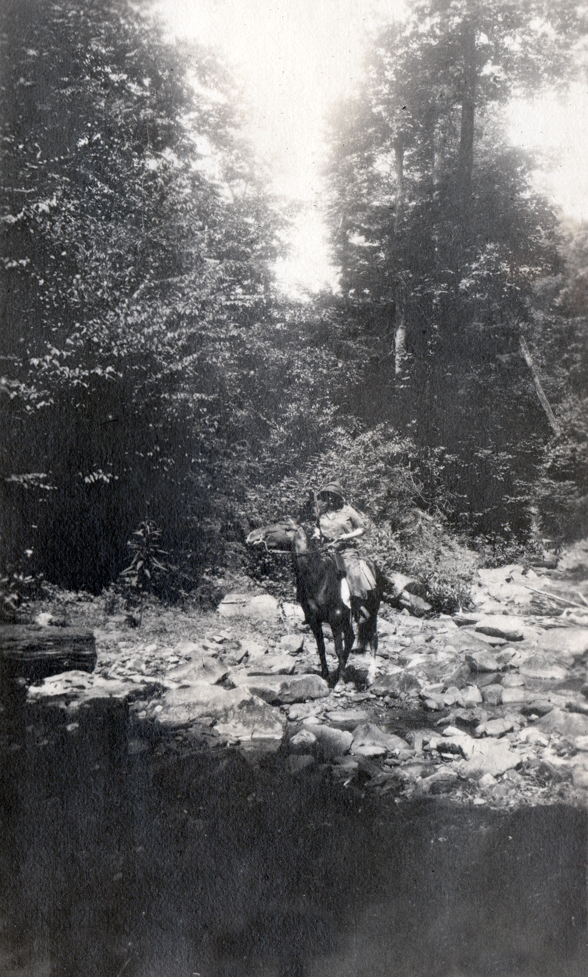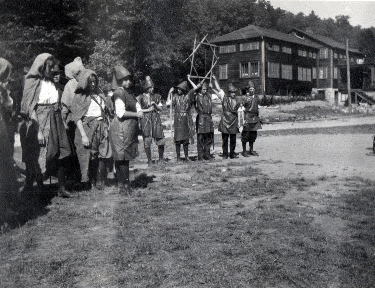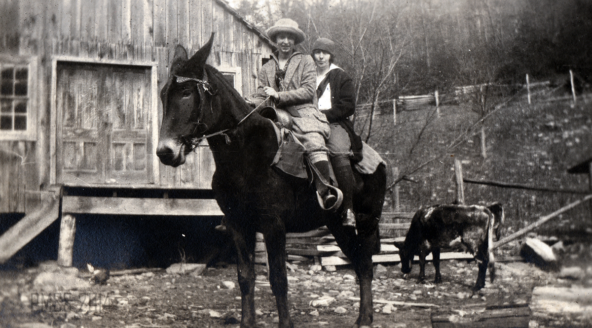Her short life, a full and happy one, is clearly seen in the photographs of Maya on horseback, with her class of young children, with co-workers and her encounters with the surrounding mountains. Her lively smile and love of dance, friends, and adventure are evident throughout the album. Many of the photographs from Pine Mountain were taken by her sister Ren when she came to visit with Maya in 1923. She was most likely using an early Kodak camera and the photographs were carefully placed in a “Kodagraph” album. The images are often unique and are not replicated in the photographs that circulated among the workers and administration at the School. Often, other photographs are found in duplicate in the PMSS collections and in many of the albums created by workers at Pine Mountain.