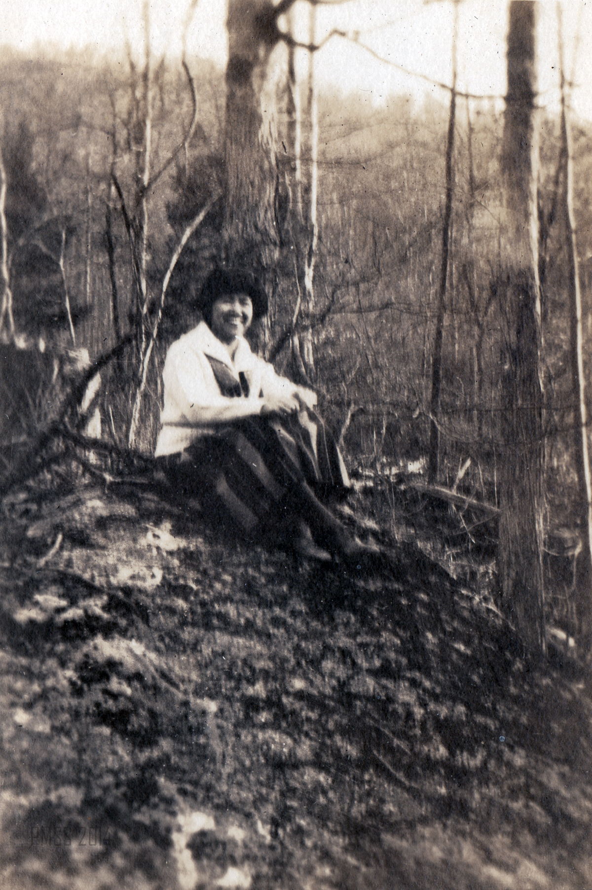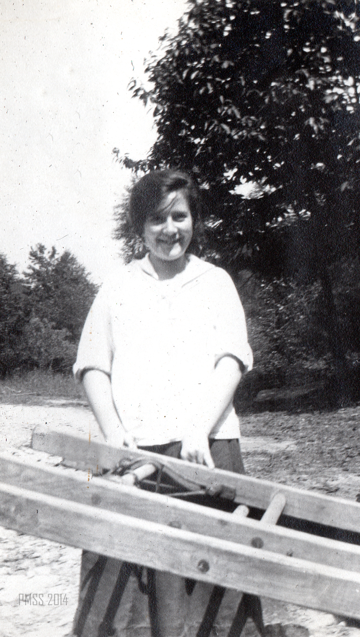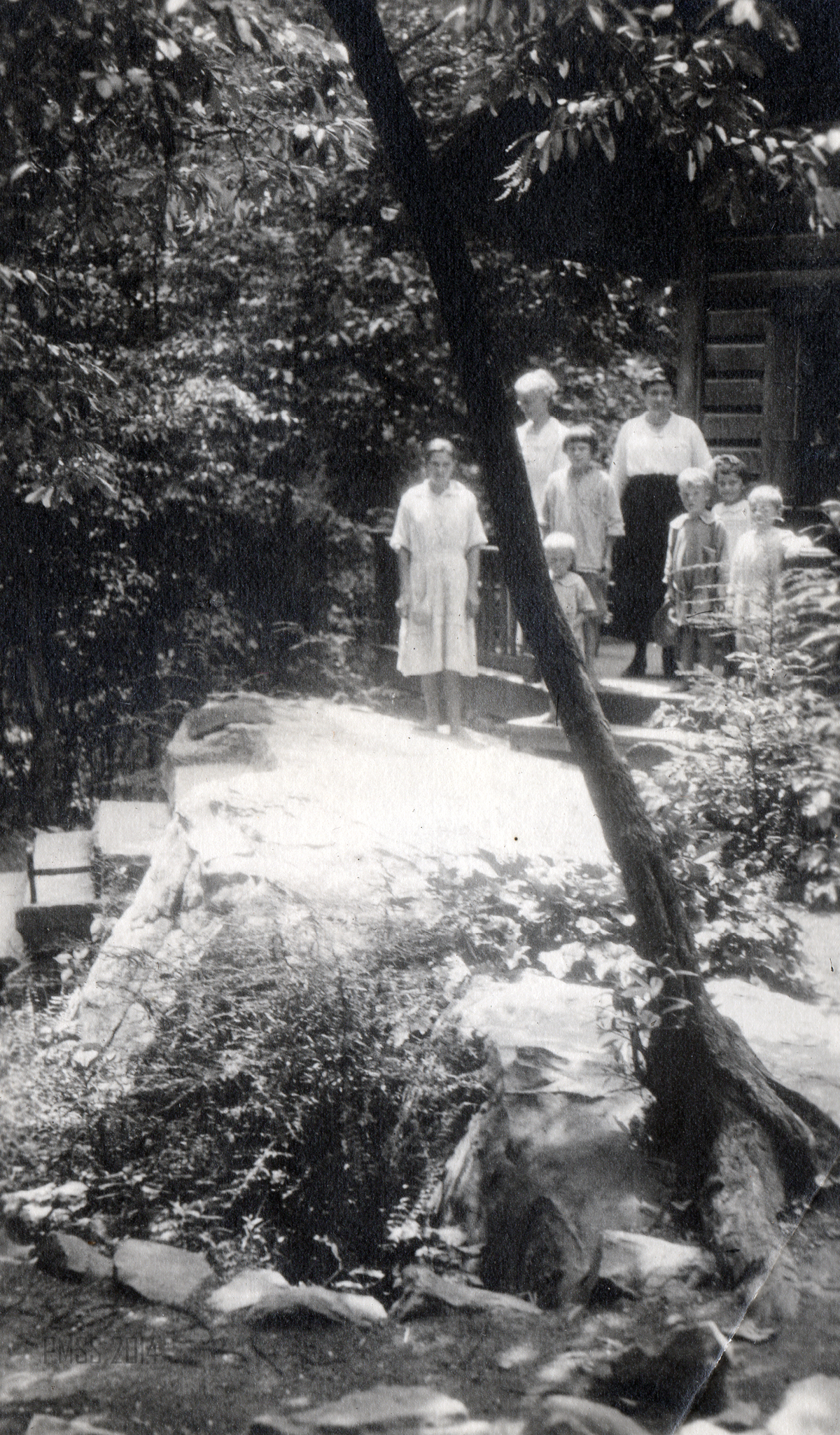 Her short life, a full and happy one, is clearly seen in the photographs of Maya on horseback, with her class of young children, with co-workers and her encounters with the surrounding mountains. Her lively smile and love of dance, friends, and adventure are evident throughout the album. Many of the photographs from Pine Mountain were taken by her sister Ren when she came to visit with Maya in 1923. She was most likely using an early Kodak camera and the photographs were carefully placed in a “Kodagraph” album. The images are often unique and are not replicated in the photographs that circulated among the workers and administration at the School. Often, other photographs are found in duplicate in the PMSS collections and in many of the albums created by workers at Pine Mountain.