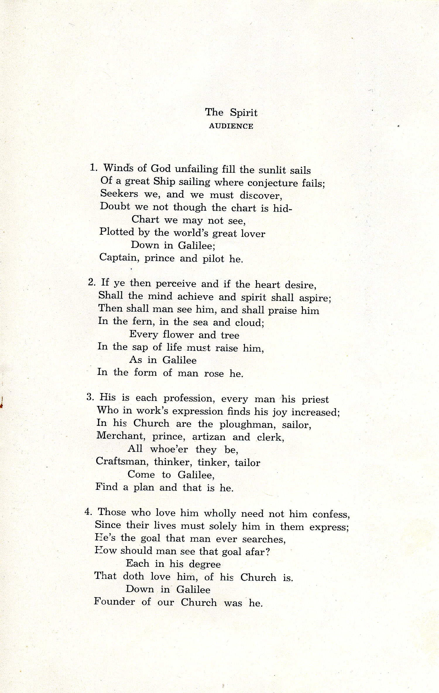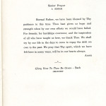 Eternal Father, we have been blessed by Thy guidance to this time. Thou has given us hope and strength when by our own efforts we would have failed. For friends; for hardships overcome; and the inspiration of all who have taught us here, we thank Thee. We shall try by our life in the days to come to repay the debt we owe to the past. We pray that Thy spirit, which we have felt here in many ways, will be in our hearts always.