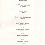 When we look for the word in our dictionaries we find that the Latin, “liber” l-i-b-e-r means free in the sense of generous, liberate – to set free from bondage, liberty — a synonym for freedom itself. We speak of having had a liberal arts education.  Our years in high school have been just that, a liberal education or a freeing education. What has been set free? Our minds. They have been unlocked, opened. They are free to travel just as far as our sympathies and understandings reach. We have dipped into a number of fields of knowledge, perhaps we have had little more than an introduction, but we have a speaking acquaintance, we know just as surely as when we are presented to a new friend, that here or there we have found something that bears further acquaintance, something that must be cultivated. So it is that we all find our special interests, and abilities, and we are prepared to keep right on advancing, studying, putting into practice, working in school, or out of school to use that individual talent which we have found to be ours to the end that we create something which is our worthy contribution to the sum of good things that men have done and will do.