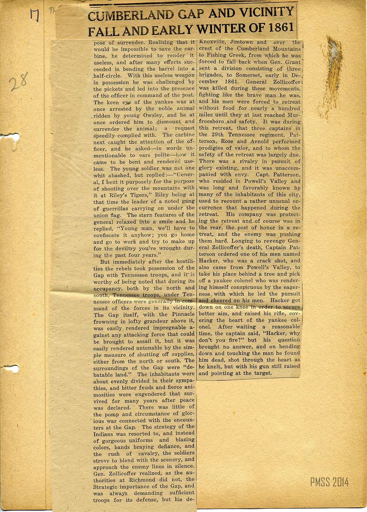 Cumberland Gap and Vicinity Fall and Early Winter of 1861 Part II. Incidents Recounted By Rev. S. Owsley and Others. [Page 17 & 17a]