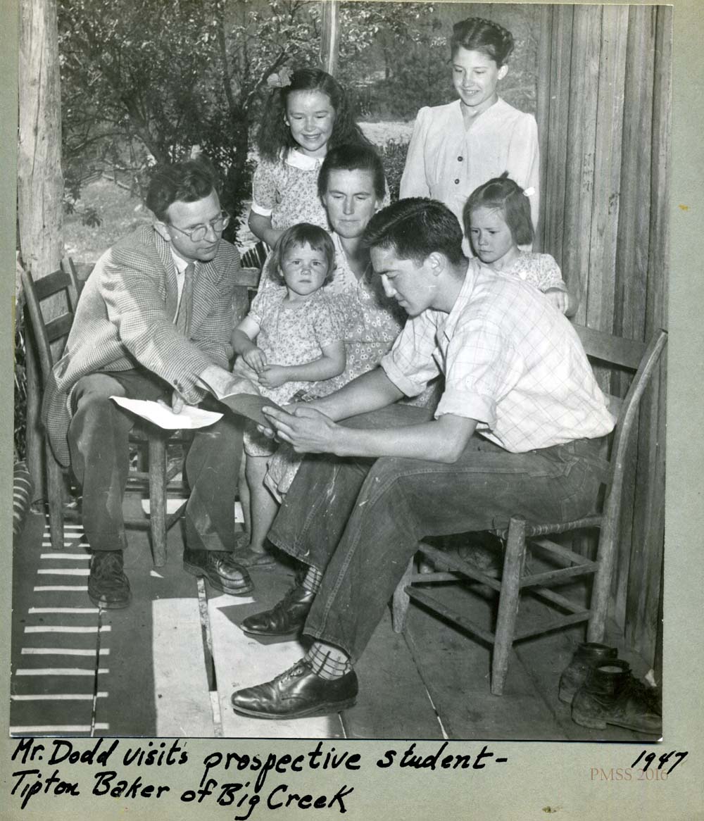 - “Mr. Dodd visits prospective student – Tipton Baker of Big Creek 1947.” [nace_II_album_023.jpg]