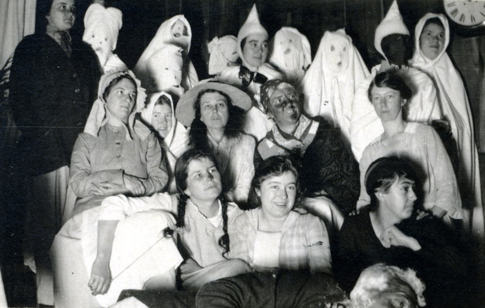 lave_031 Hallowe’en Party. Oct. 1918. I checked myself in case you can’t distinguish my features. You can’t really tell what we look like by this. lave031.jpg (176470 bytes)