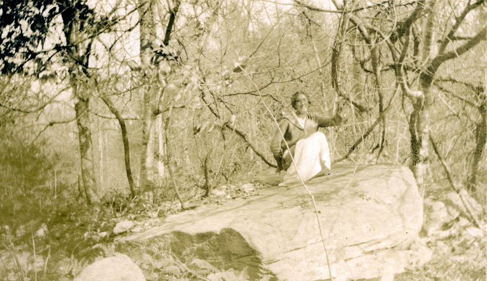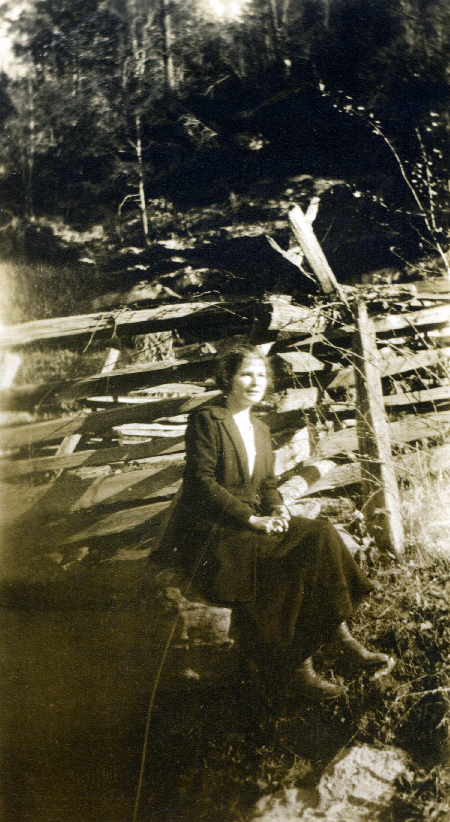 - Frances Lavender Album. Minnie Callahan at Old Log House. [lave021.jpg]