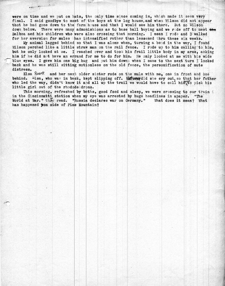 Catherine Rittenhouse came to Pine Mountain Settlement School with her friend Mary Dana in 1914, one year after the founding of the school. Both were volunteer workers for approximately six weeks. As a volunteer at the school she was engaged in many activities. While there she recorded her work, her reflections, and the life of the school in both letters home and in photographic images. Following her death in 1958, her husband, Leroy V. Sanford, sent her early letters and her images to Pine Mountain Settlement School to be added to the archive.