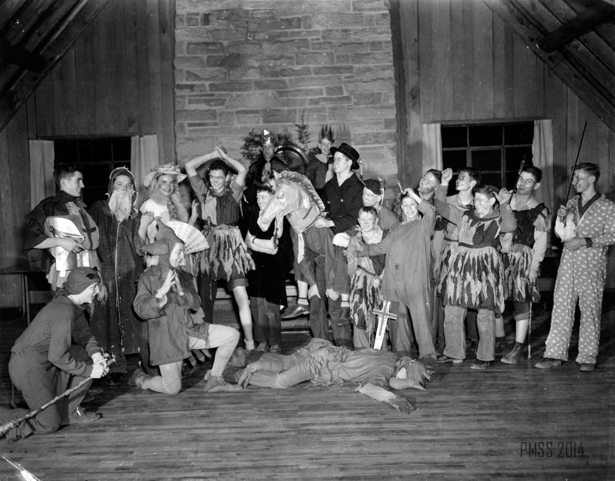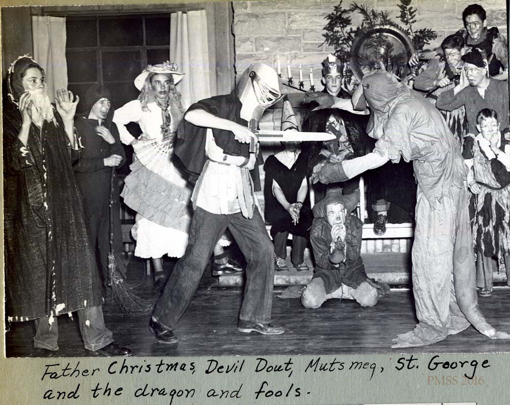 The Mummer’s Play was performed until the end of the Boarding School year and this abbreviated account from the 1948-49 Pine Cone by student Carlos Banks captures the action and fun of this play for both the students watching the play and those performing.