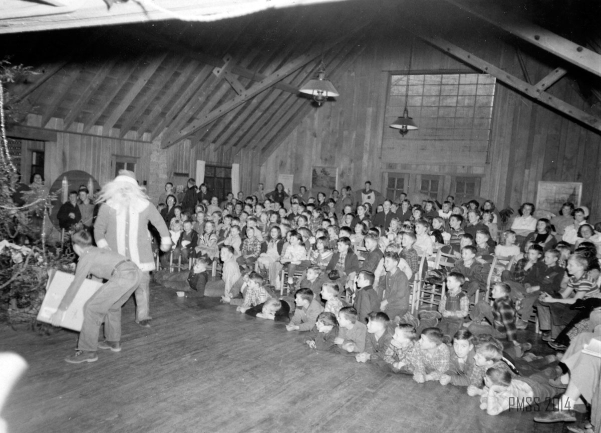 CHRISTMAS SANTA CLAUS, CHRISTMAS TREES, PARTIES are depicted in the following nine photographs of PMSS community, student, and staff activities celebrating the holiday season.