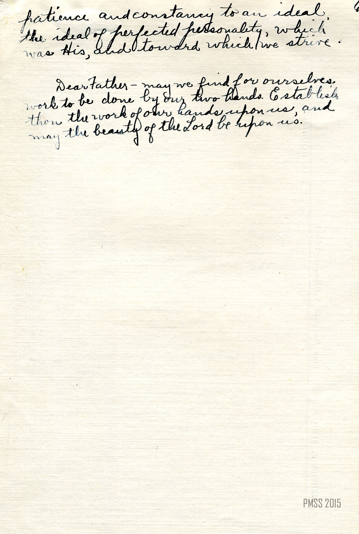 Dear Father — May we find for ourselves work to be done by our two hands. Establish thou the work of our hands upon us, and may the beauty of the Lord be upon us.