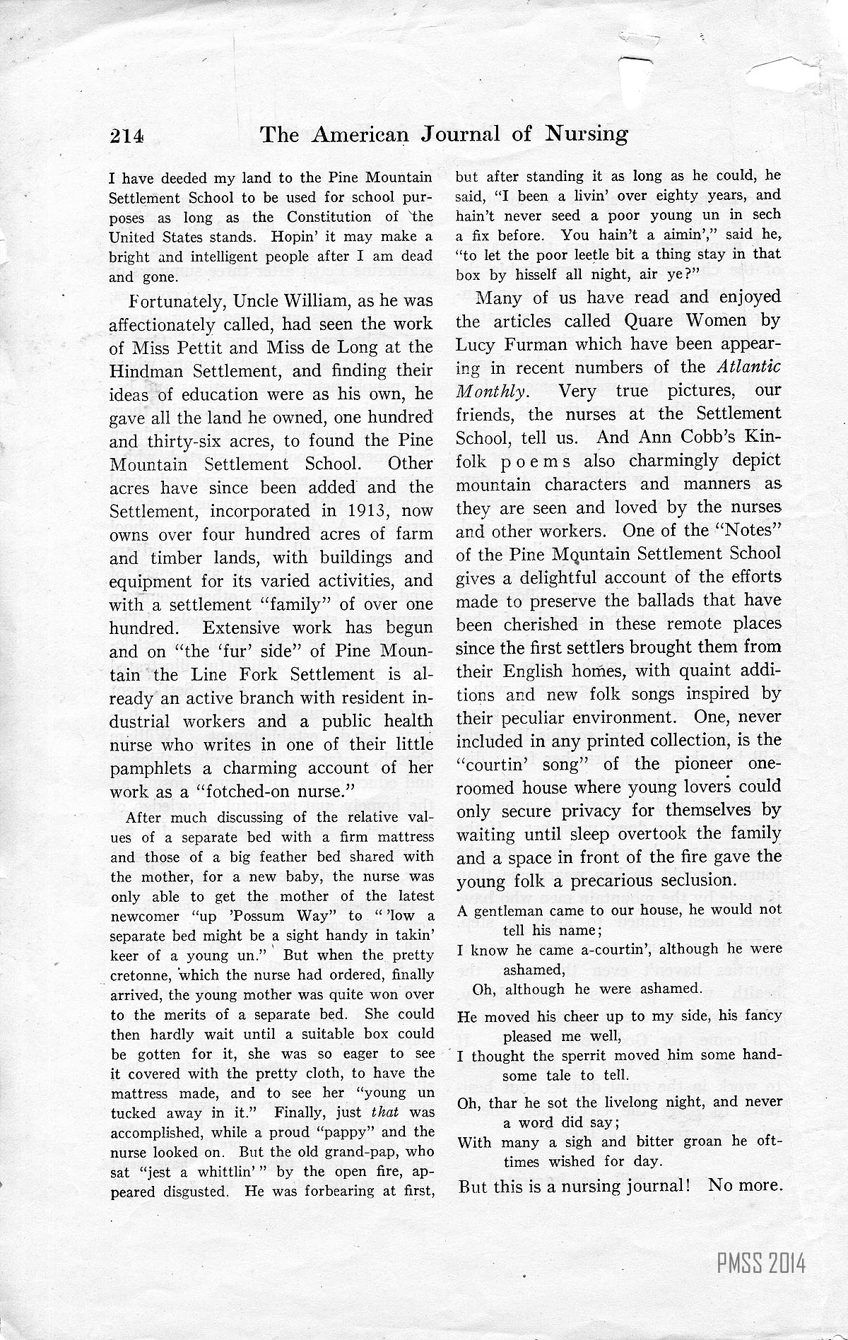 - American Journal of Nursing. “Mountain Children in Kentucky,: by Lucy E. Halbert, p. 214