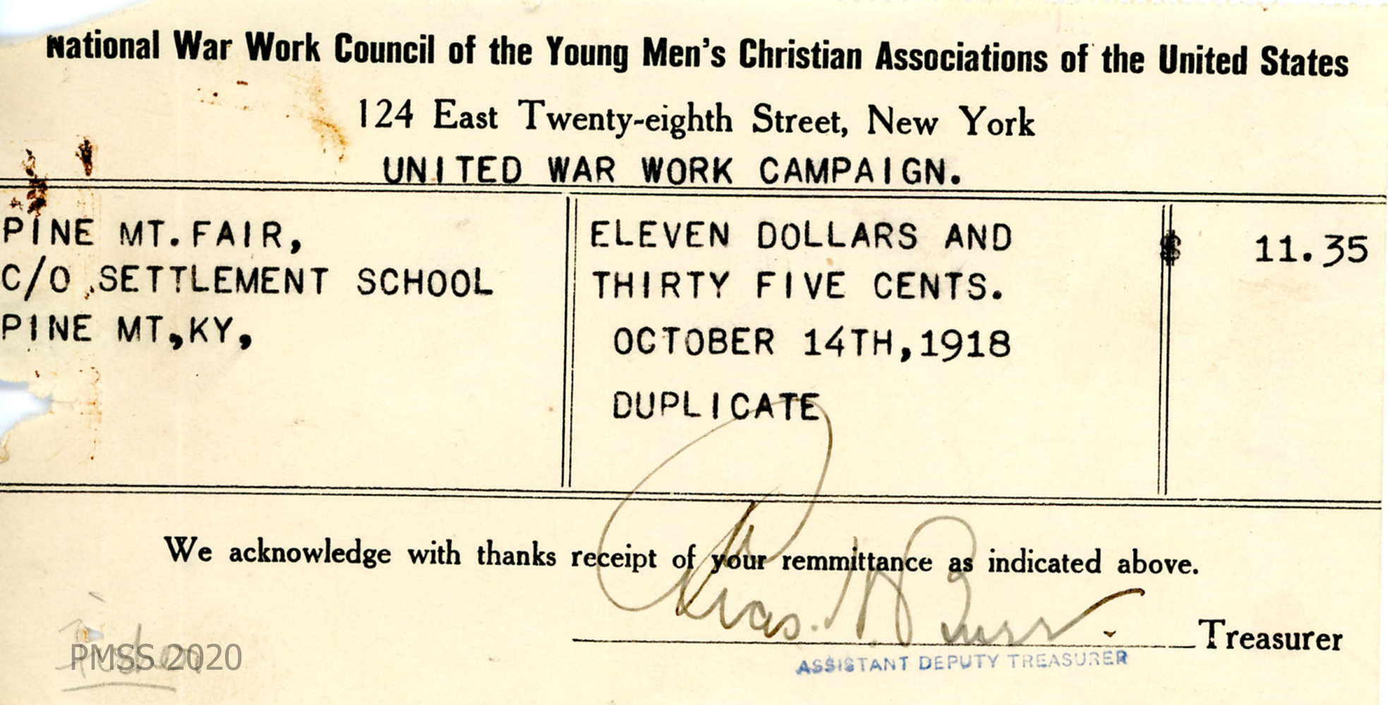 [075] October 14,1918. A receipt from the National War Work Council of the YMCAs of the U.S., New York, NY, for $11.35 from PMSS.