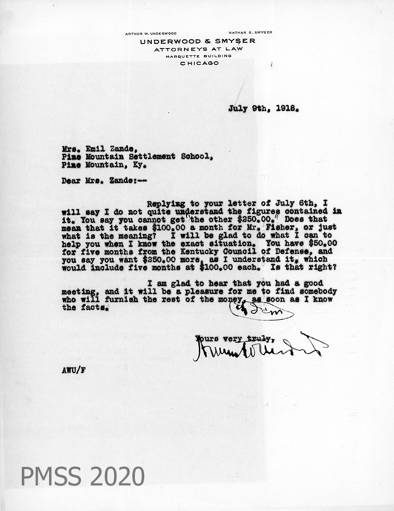 [050] July 9, 1918. To Zande from Underwood, asking for clarification of the figures for Fisher’s salary so that he can help raise the rest of the money.
