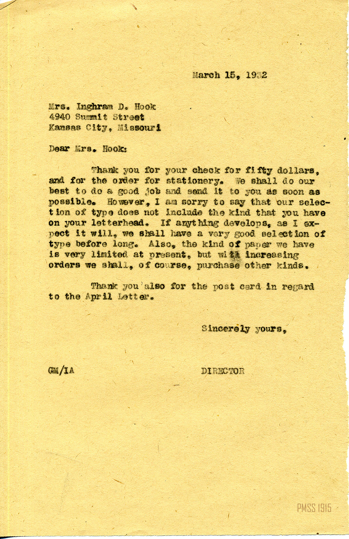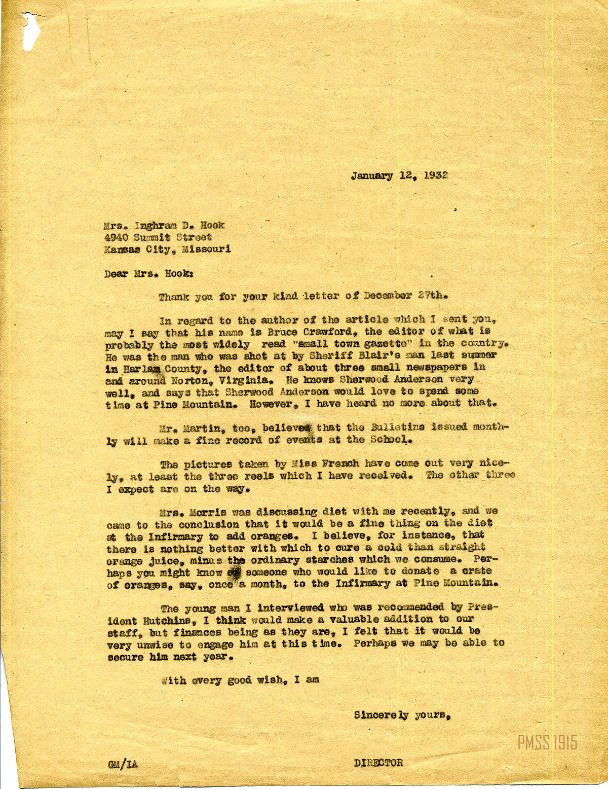 MARY ROCKWELL HOOK Correspondence 1932 Box 18:2-26 1932