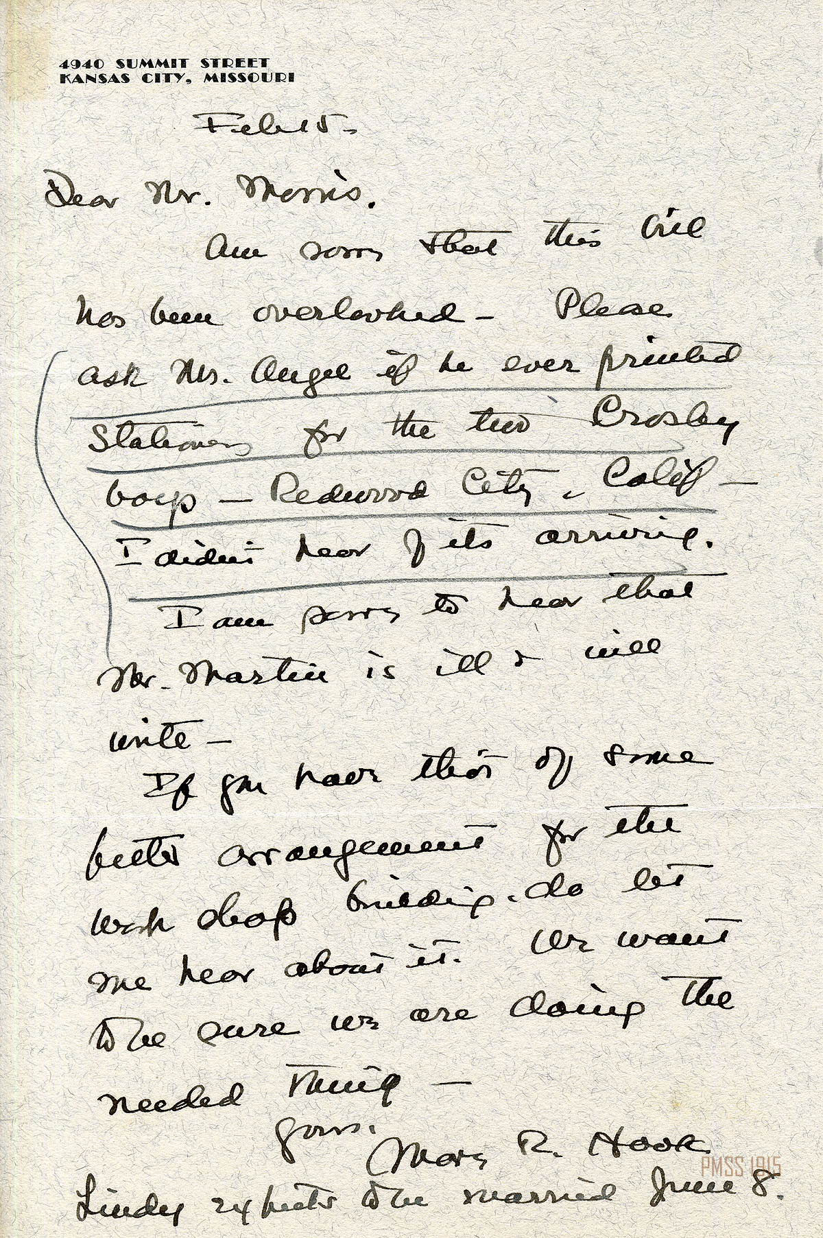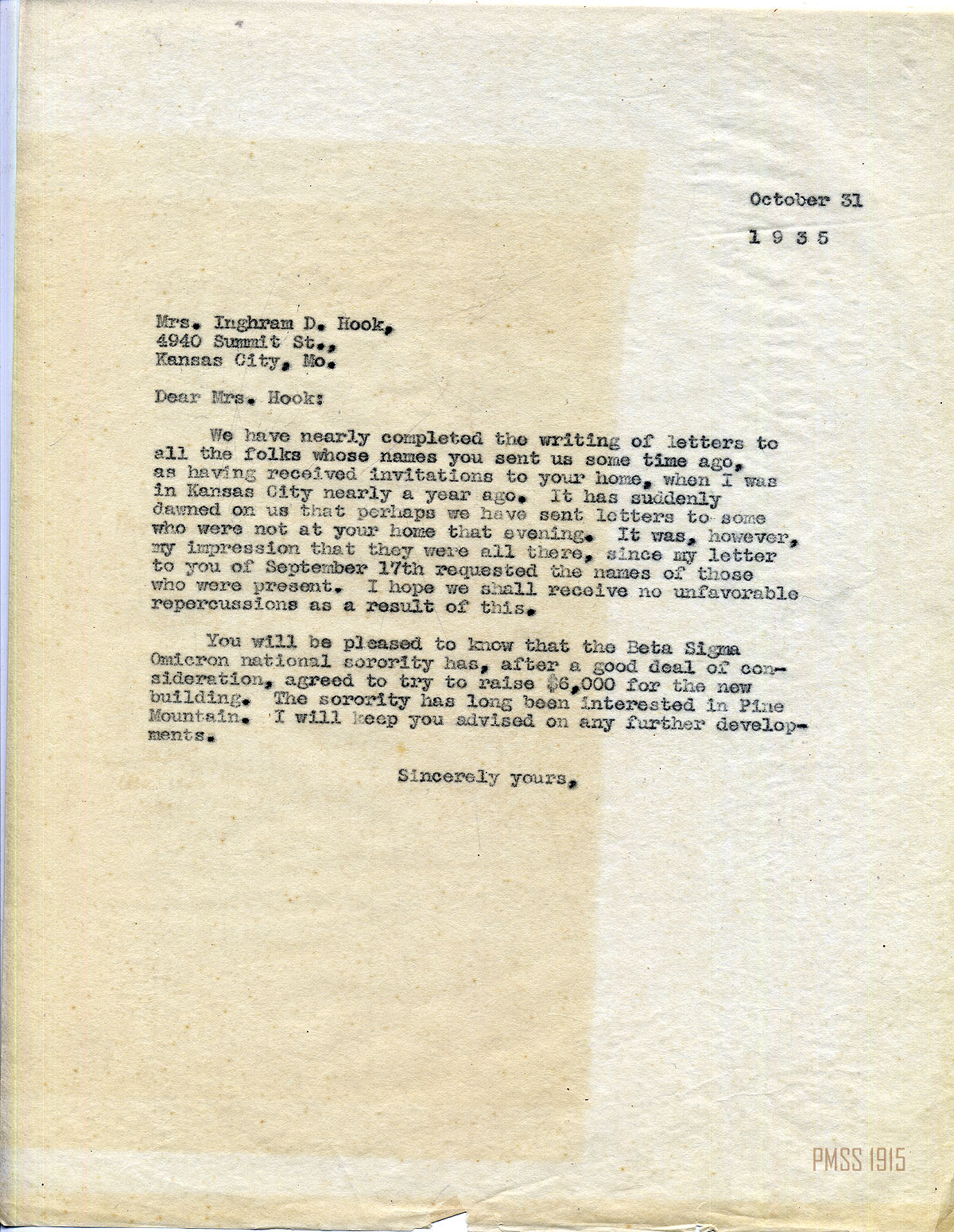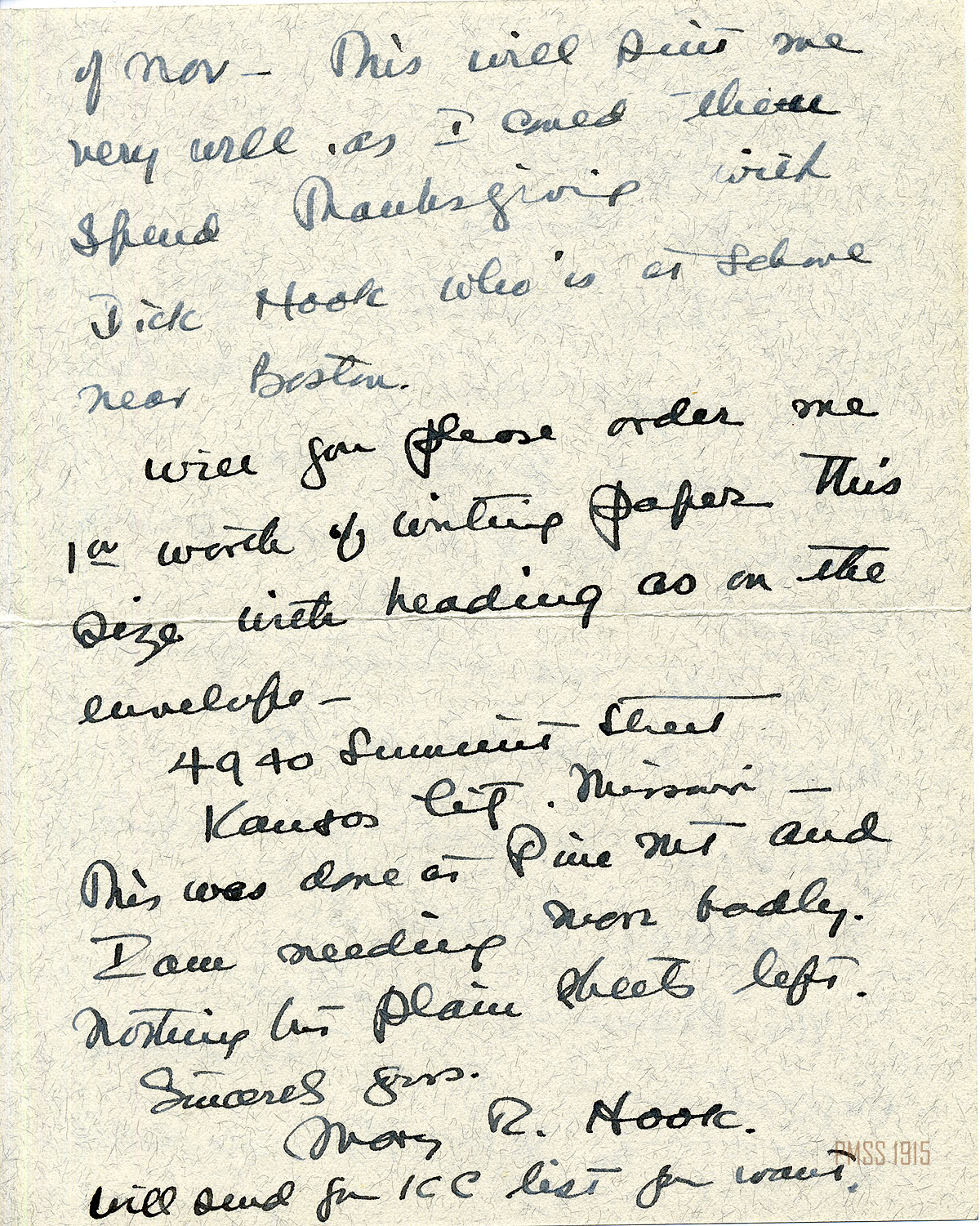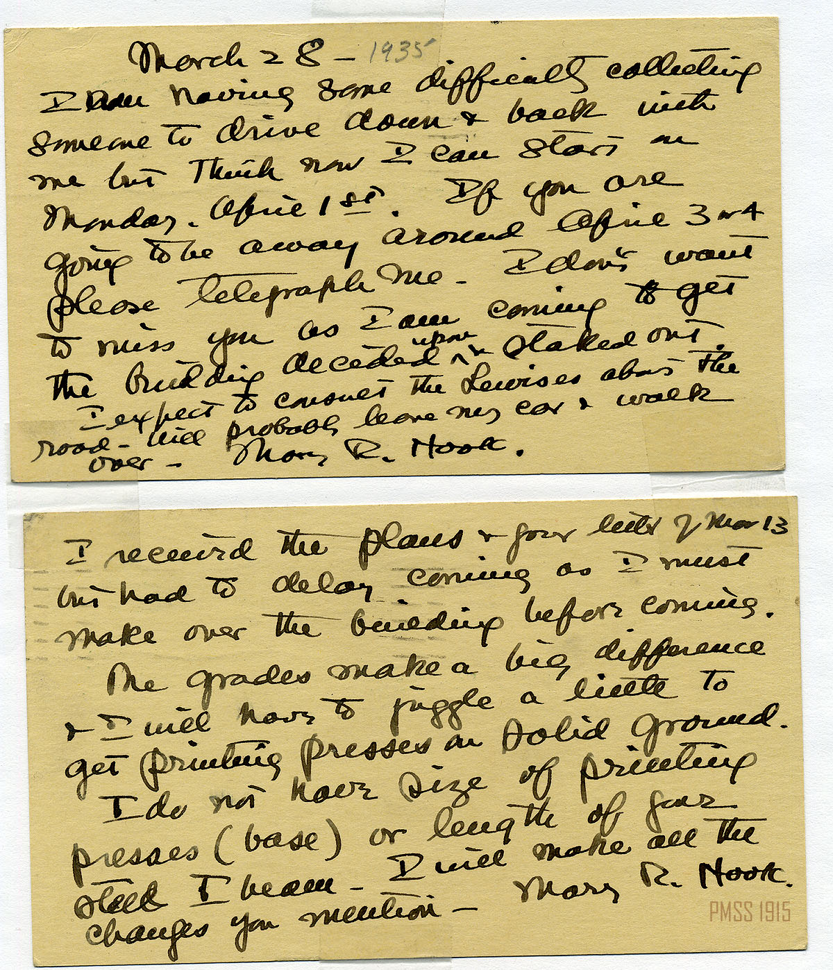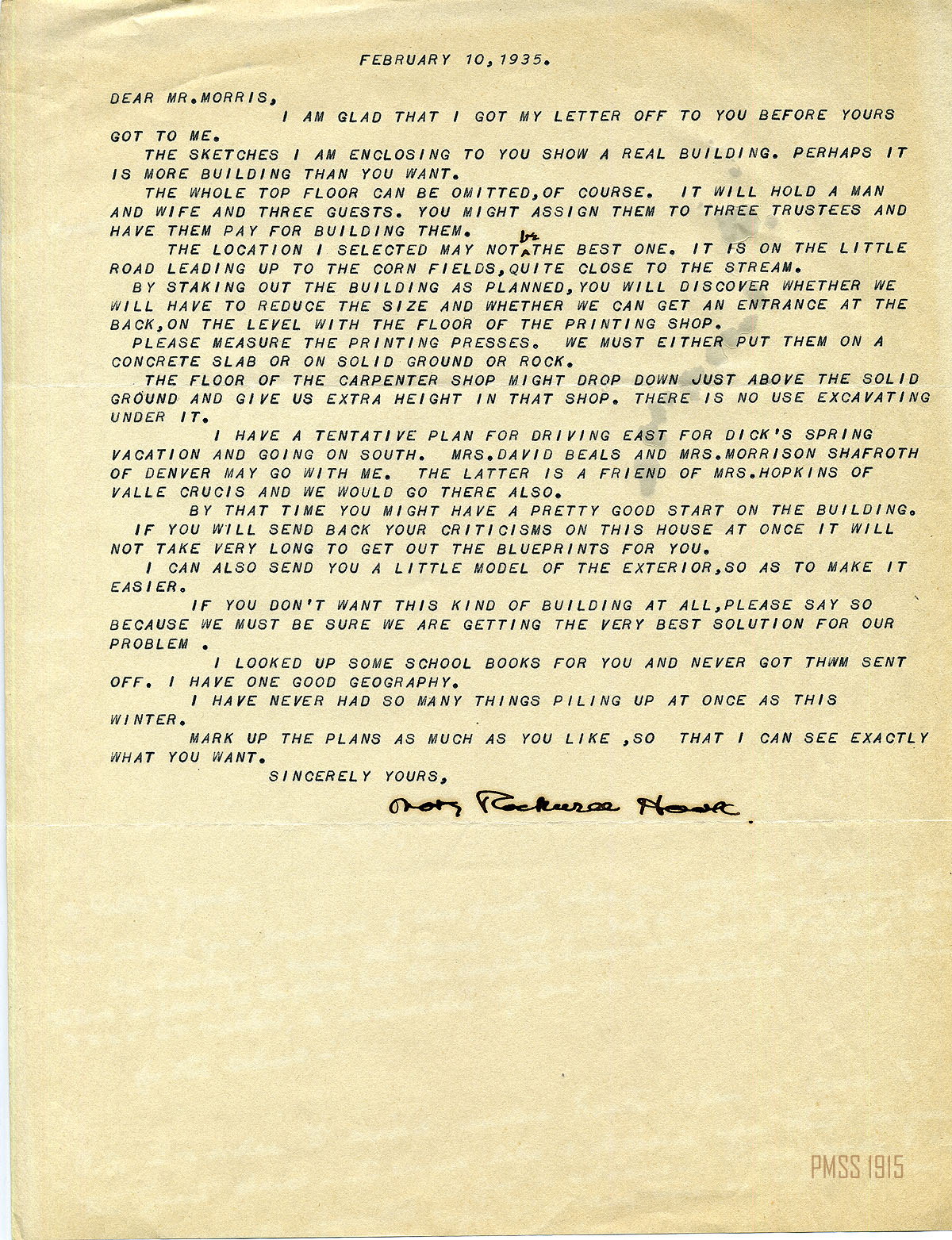 MARY ROCKWELL HOOK Correspondence 1935 Box 18: 2-47