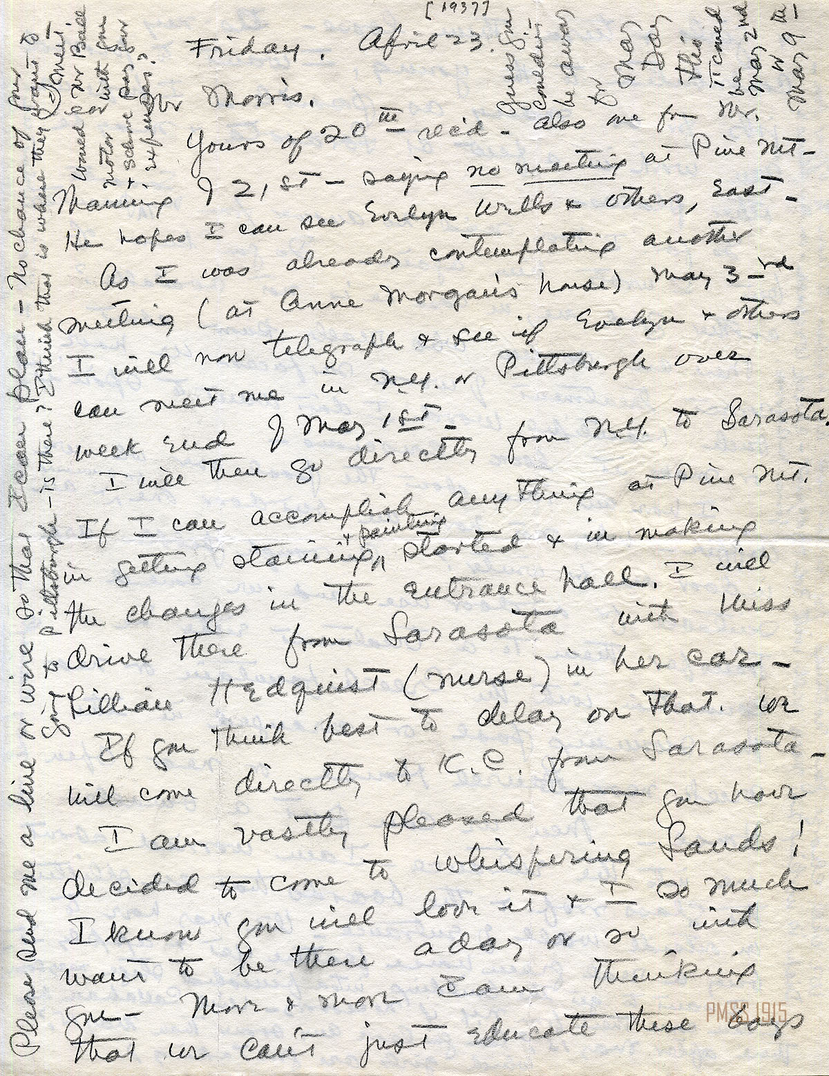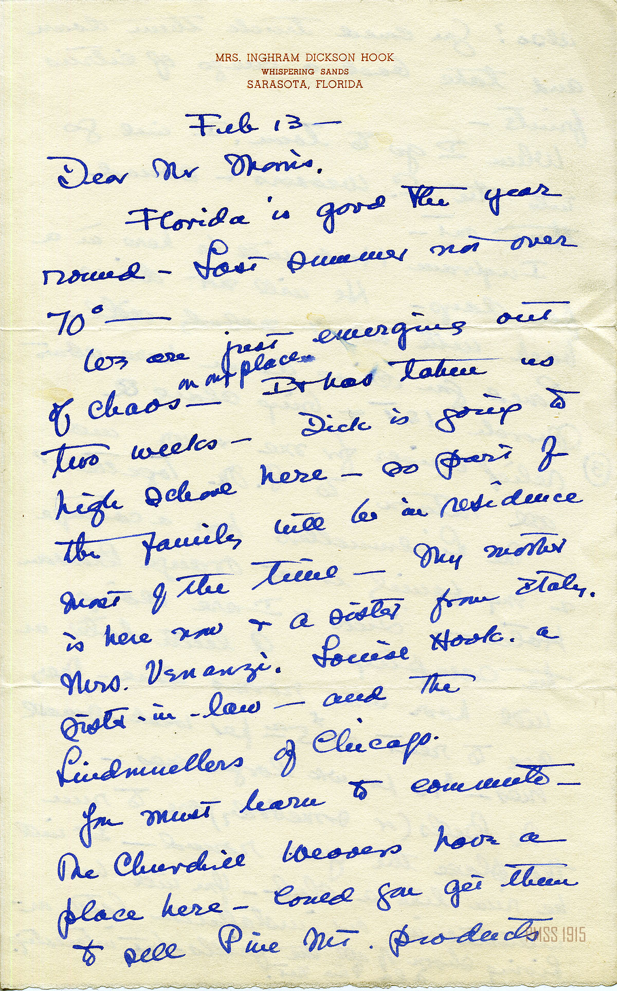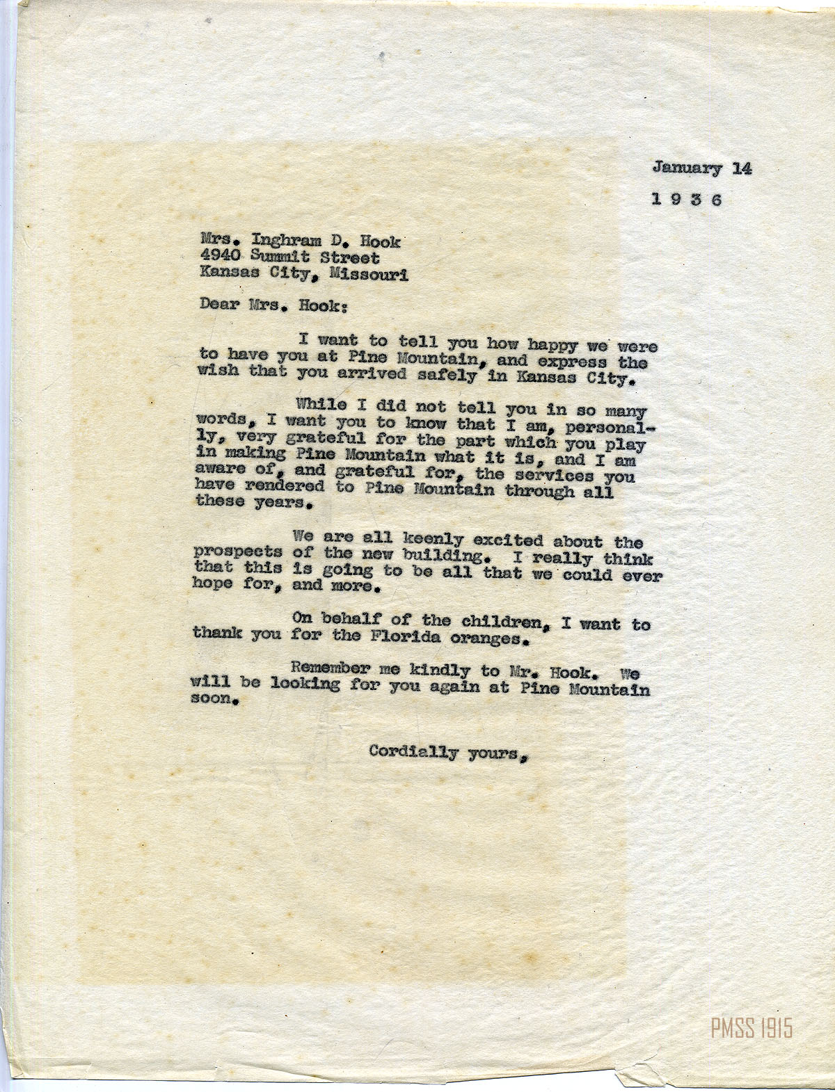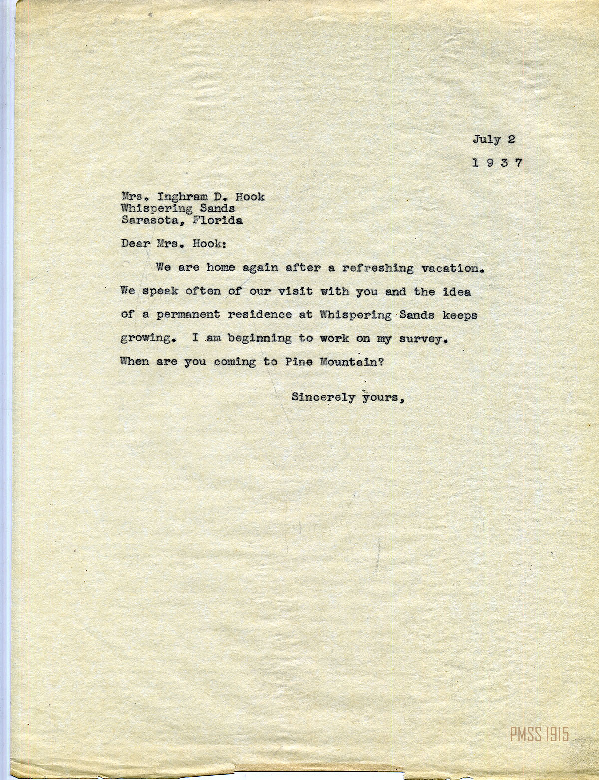 MARY ROCKWELL HOOK Correspondence 1937