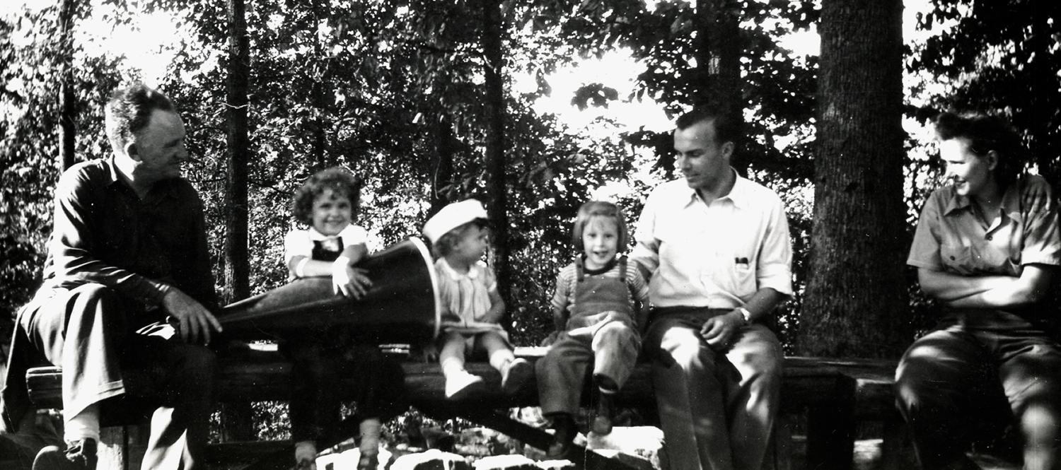 - Mountain Day, 1947. Mr. Benjamin, Libby and Margaret Dodd, Janice, Allen, [?] [nace_1_075b.jpg]