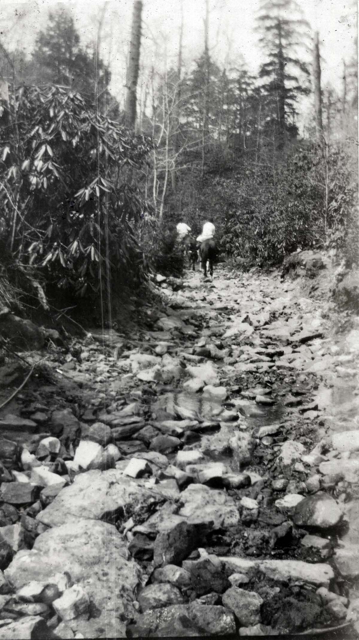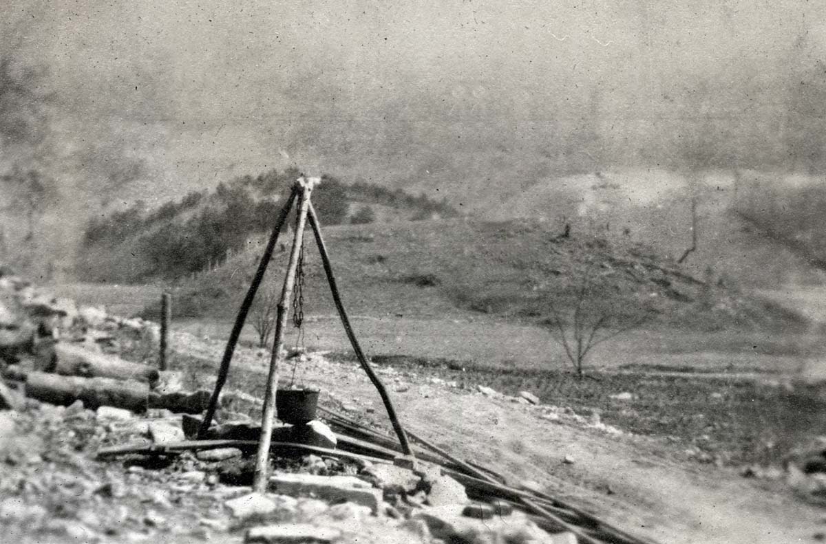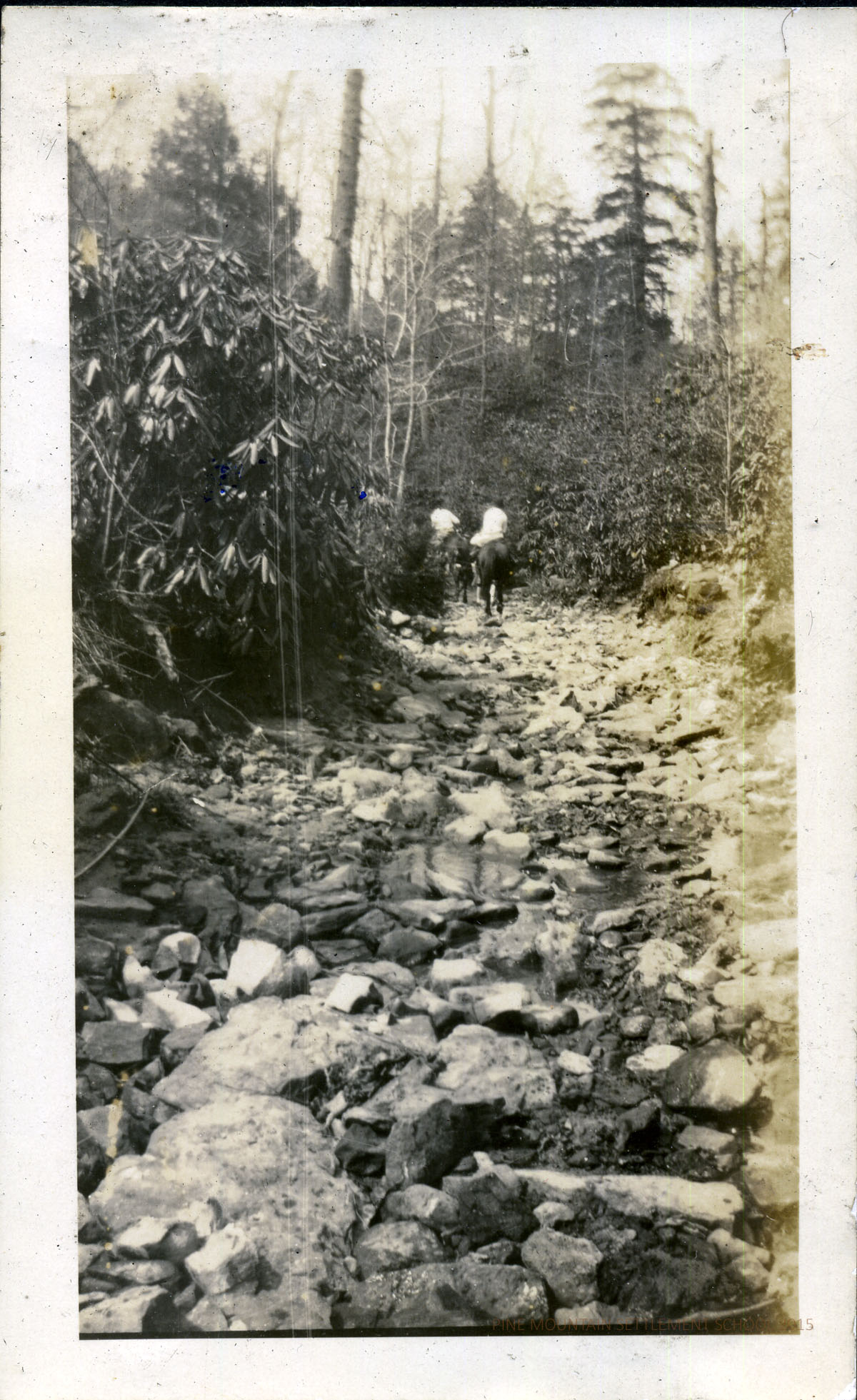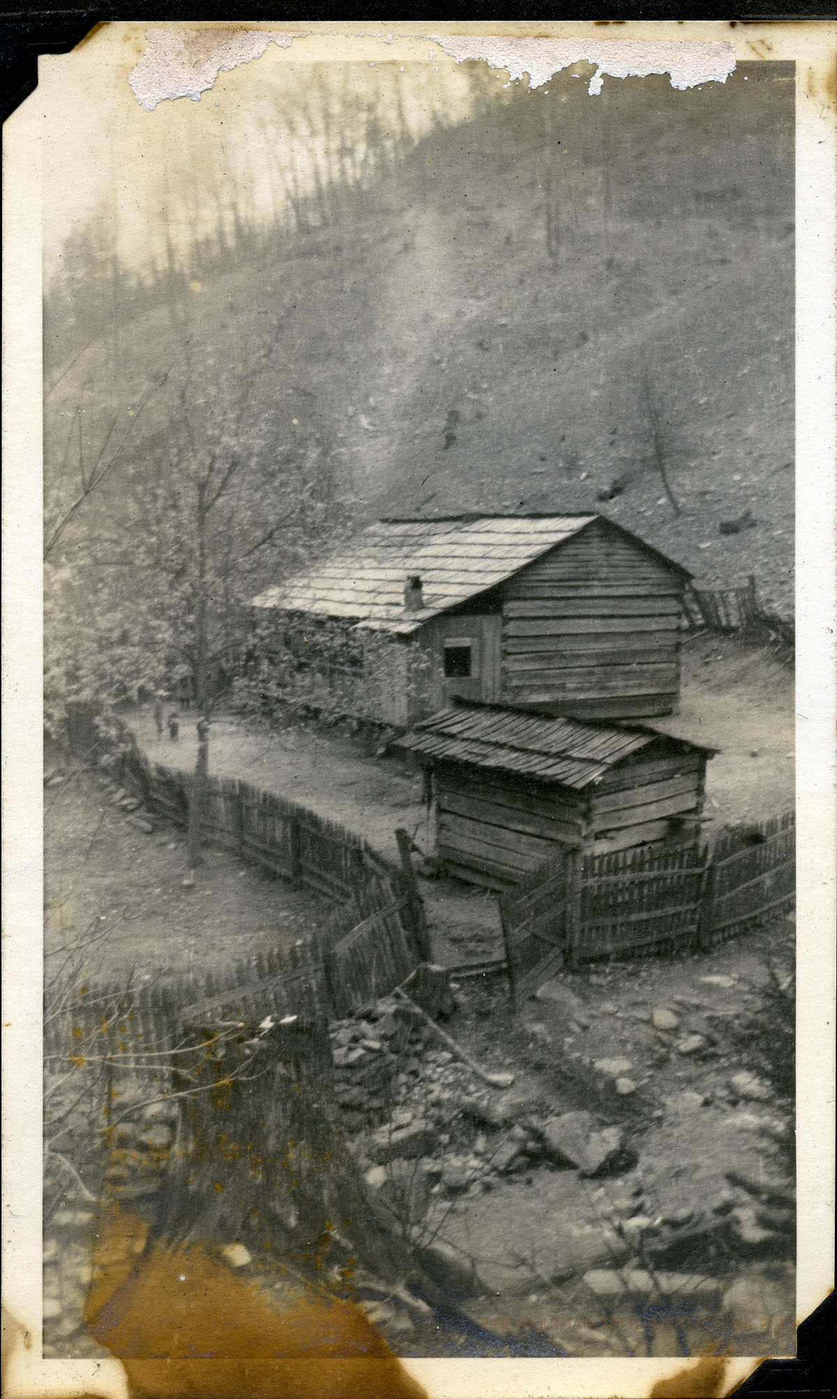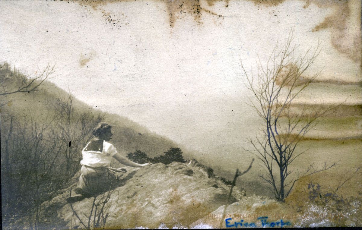 The condition of the photograph album is very poor. Many of the images were damaged by moisture and were adhered to one another or were badly stained or showed substantial emulsion-shift. Luckily, many of the damaged images are reproduced in other staff collections. Pine Mountain is beginning the process of restoration of many of the images and they are being placed alongside the damaged items in the various Parts I, II, III, etc. The online album will grow as it will now duplicate images in each Part. Please excuse the inconvenience as we shift images and add the new modified images.