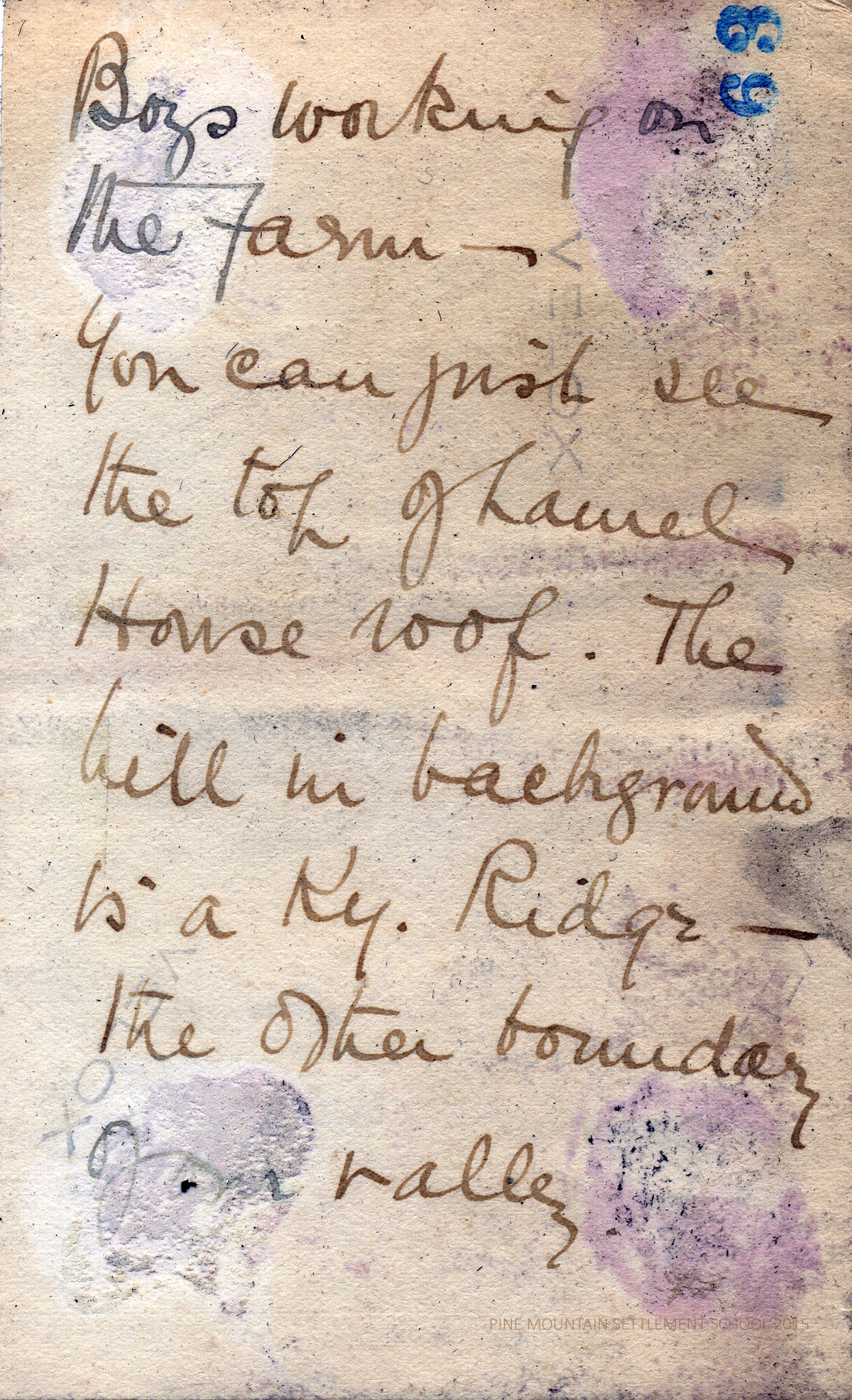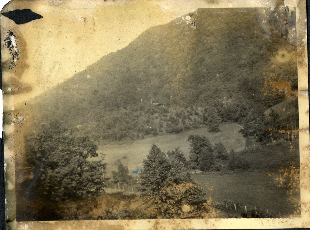 The album was donated to Pine Mountain Settlement School in June 2011 by Angela Melville’s niece, Ann Melville Wilson. The donation included the photograph album as well as newspaper clippings and a small booklet written by Angela Melville in 1957 for her nieces and nephews, called “Woodboo – 1957,” that describes her former home and life.