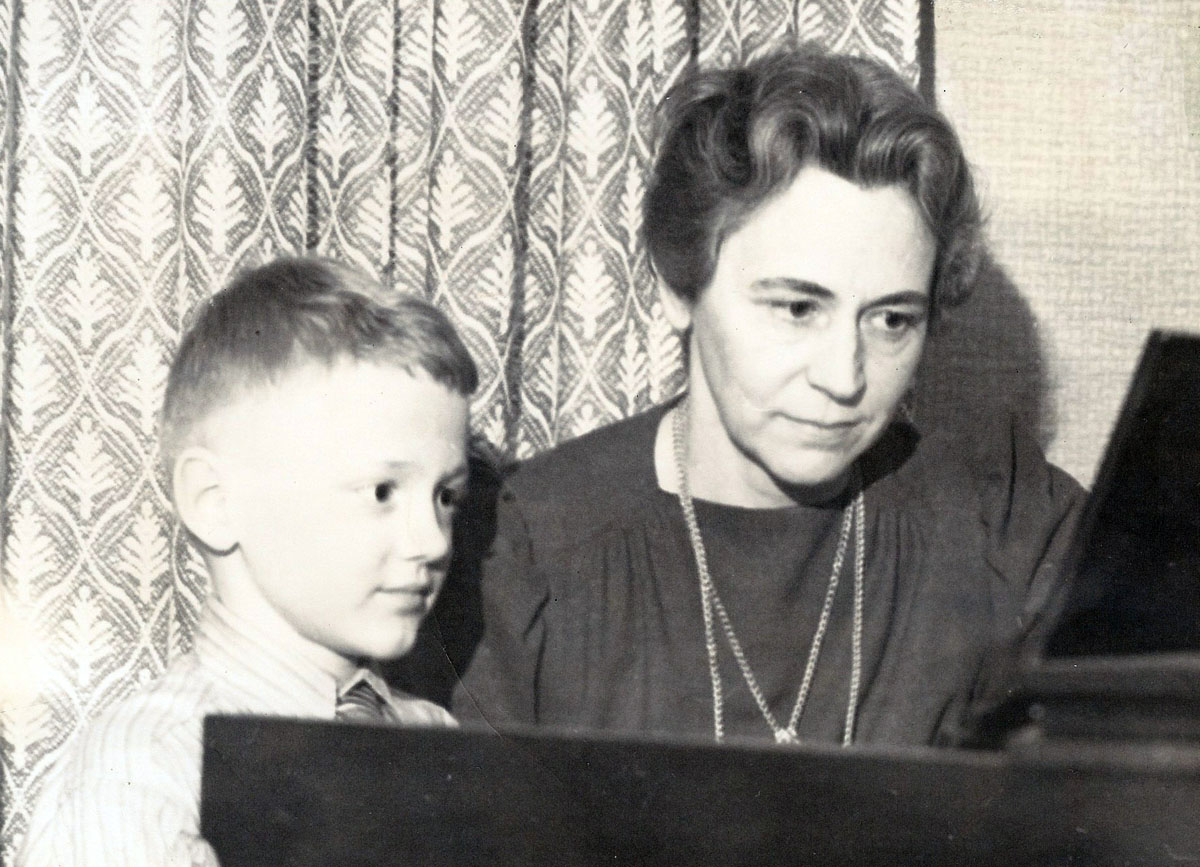 - ca 1938; at Caryl & Celia Holton’s, 128 East First Street, London, Ohio; David ; Celia Holton at piano