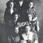 - 1910; Celia Cathcart (middle right) on Sidell, Illinois high school basketball team; need to locate original; embossed “Mrs. Butler / SIDELL / ILL.”; six girls & man (coach?)