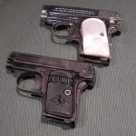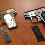 - 28 February 2017; Colt Model 1908 Hammerless Semi-Auto Pistols, .25ACP; Celia Cathcart Holton carried these pistols while she traveled alone about 1918 as she raised money to build the Pine Mountain, Kentucky road; one pistol has a mother of pearl handle; Caryl Holton gave the pistols to Hap McFadden, tenant on Holton farm; Hap’s widow returned them to William (Bill) Holton after Hap’s death; now in possession of Thomas (Tom) Holton, Dublin, Ohio
