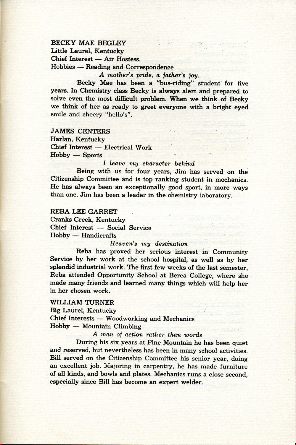 Subject Keyword | Conifer ; creative writing ; settlement schools ; students ; Pine Mountain Settlement School ; supplements ; The Pine Cone ; Pine Mountain, KY ; Harlan County, KY ; |