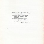 Wind of the East, Wind of the West, wandering to and fro Chant your songs in your topmost boughs, that the sons of men may know The peerless pine was the first to come, and the pine will be the last to go!