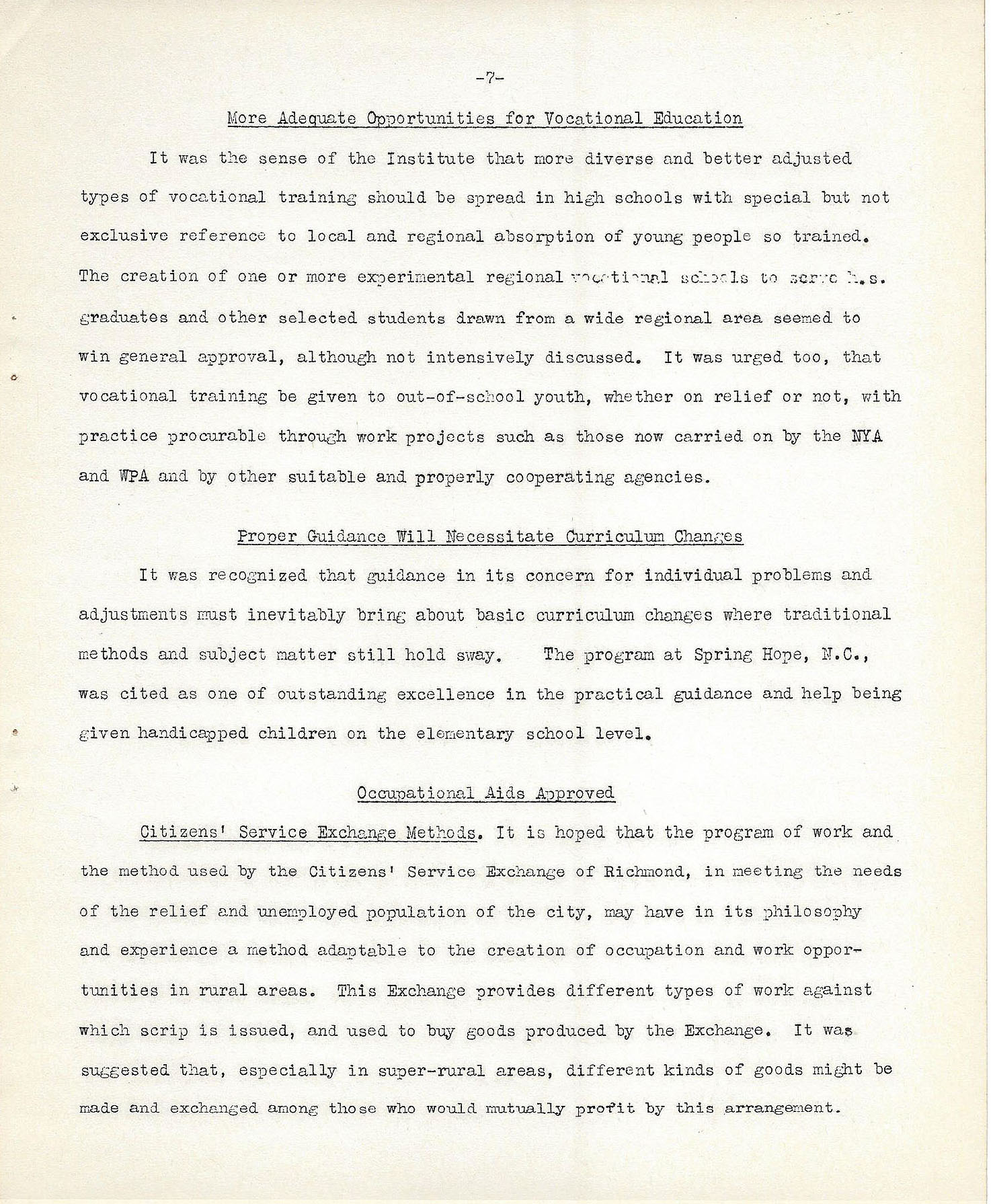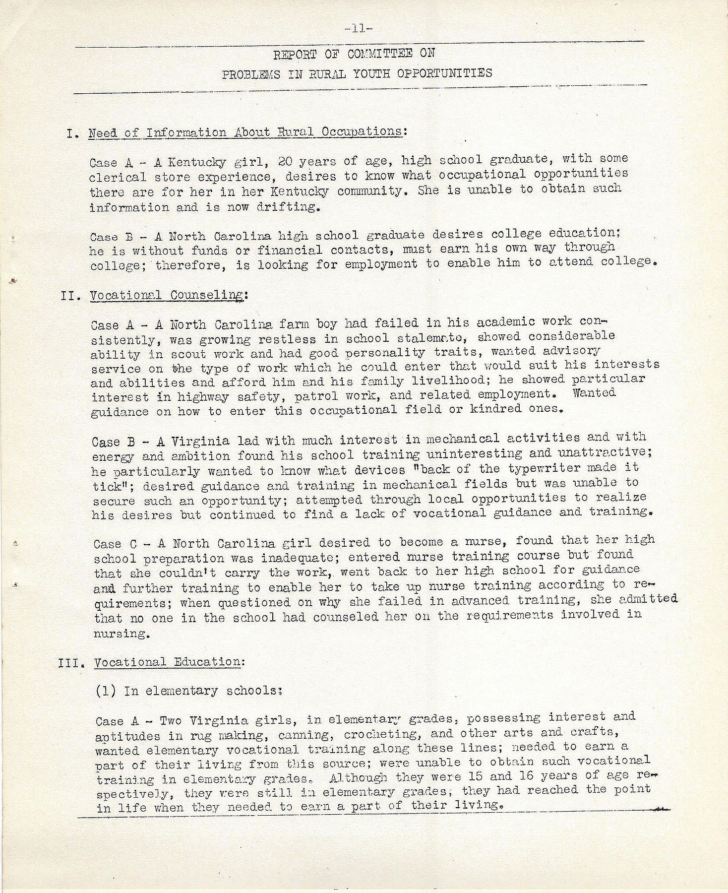 TRANSCRIPTION: 1937 RURAL YOUTH GUIDANCE INSTITUTE – FINDINGS
