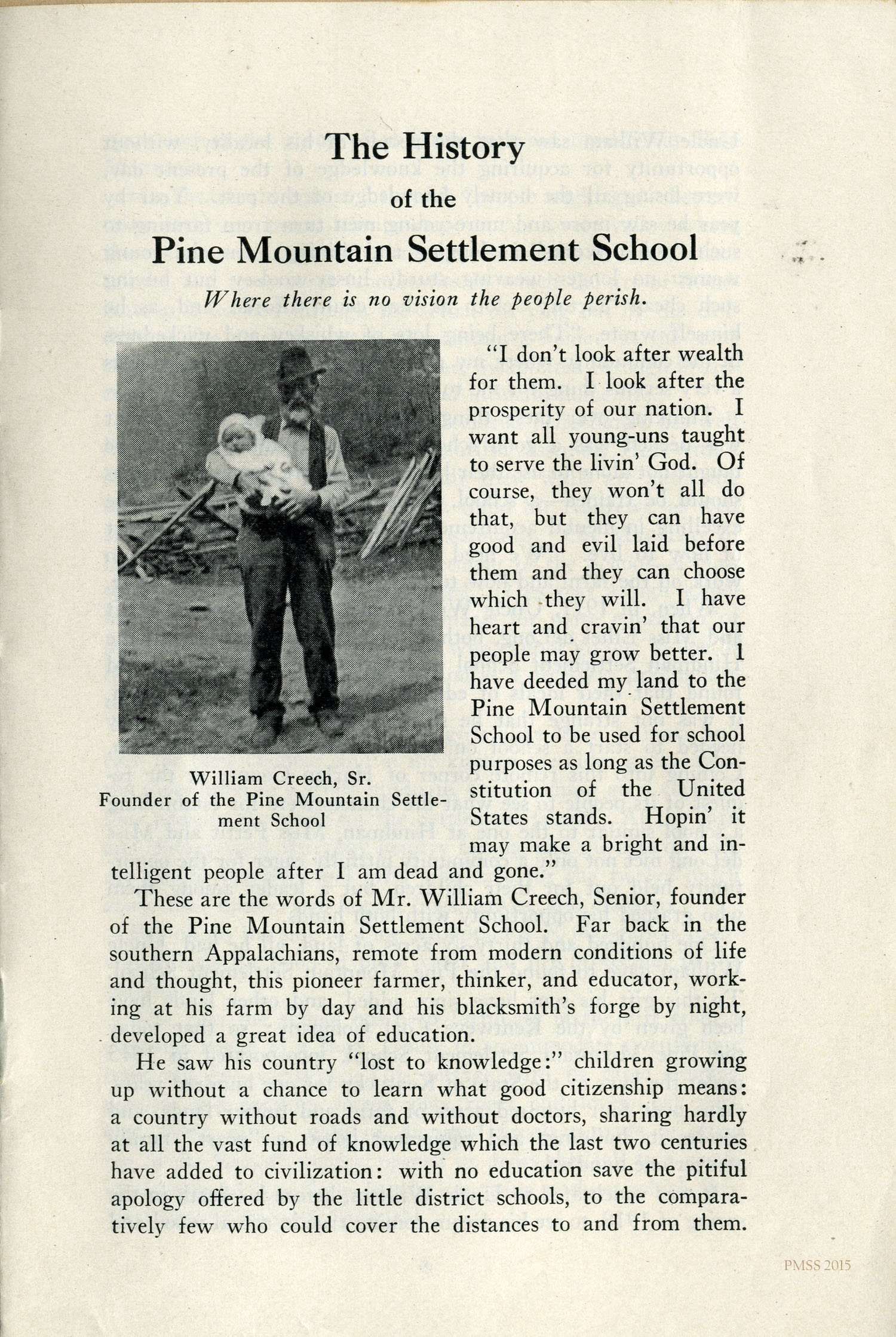 Brochure cover: “Pine Mountain Settlement School, Inc.”