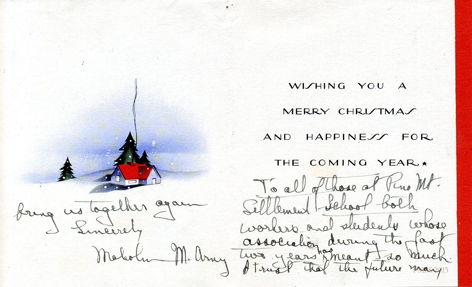 Arny to PMSS: Christmas greeting card and note.