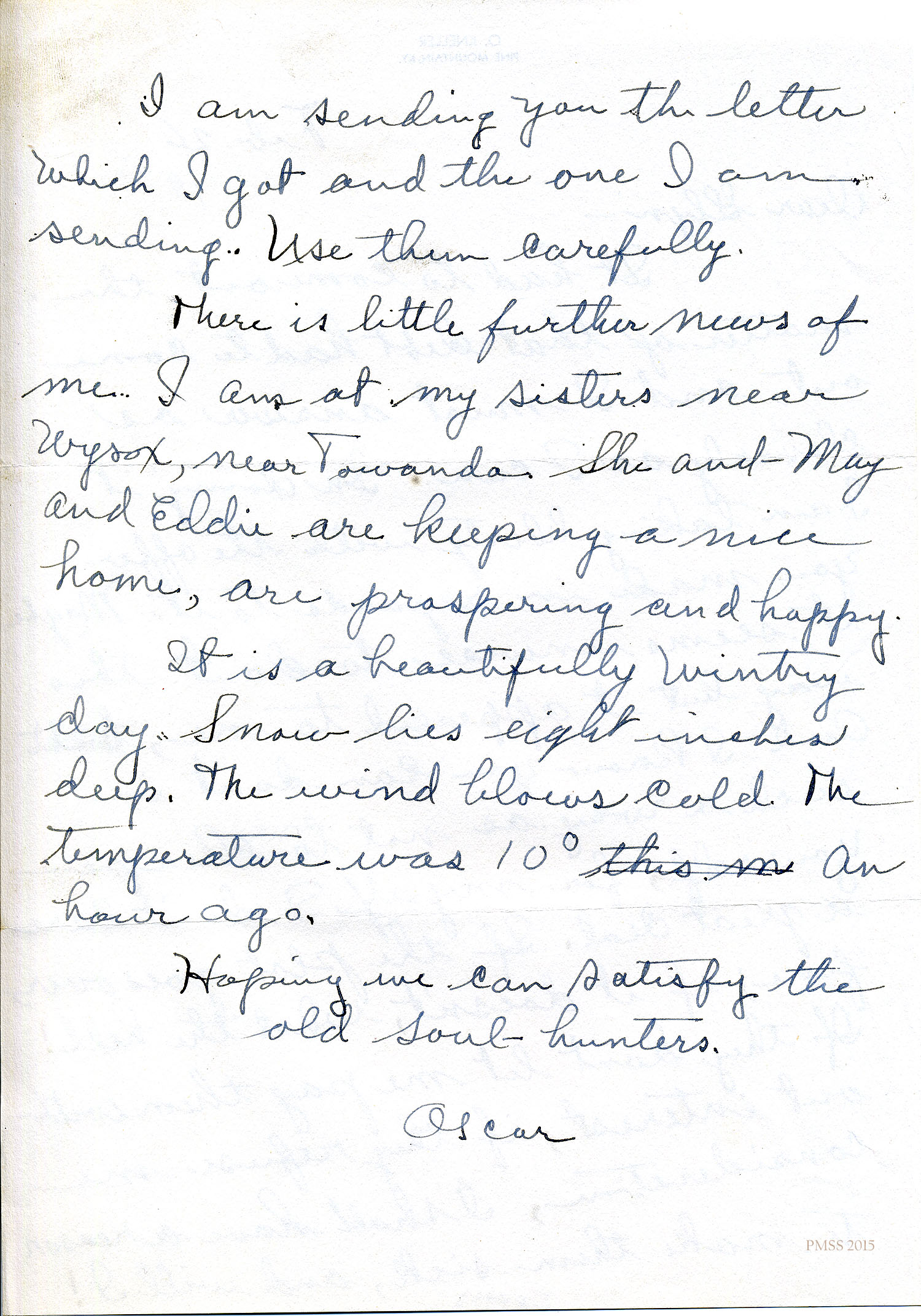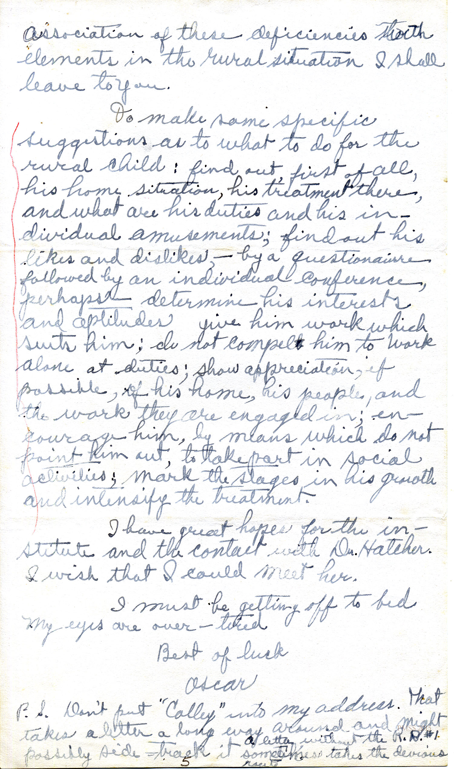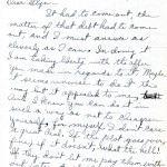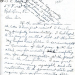 P.S. Don’t put ‘College” [?] into my address. That takes a letter a long way around and might possibly side-track it. A letter without the R.R.[?] #1 sometimes takes the devious route.