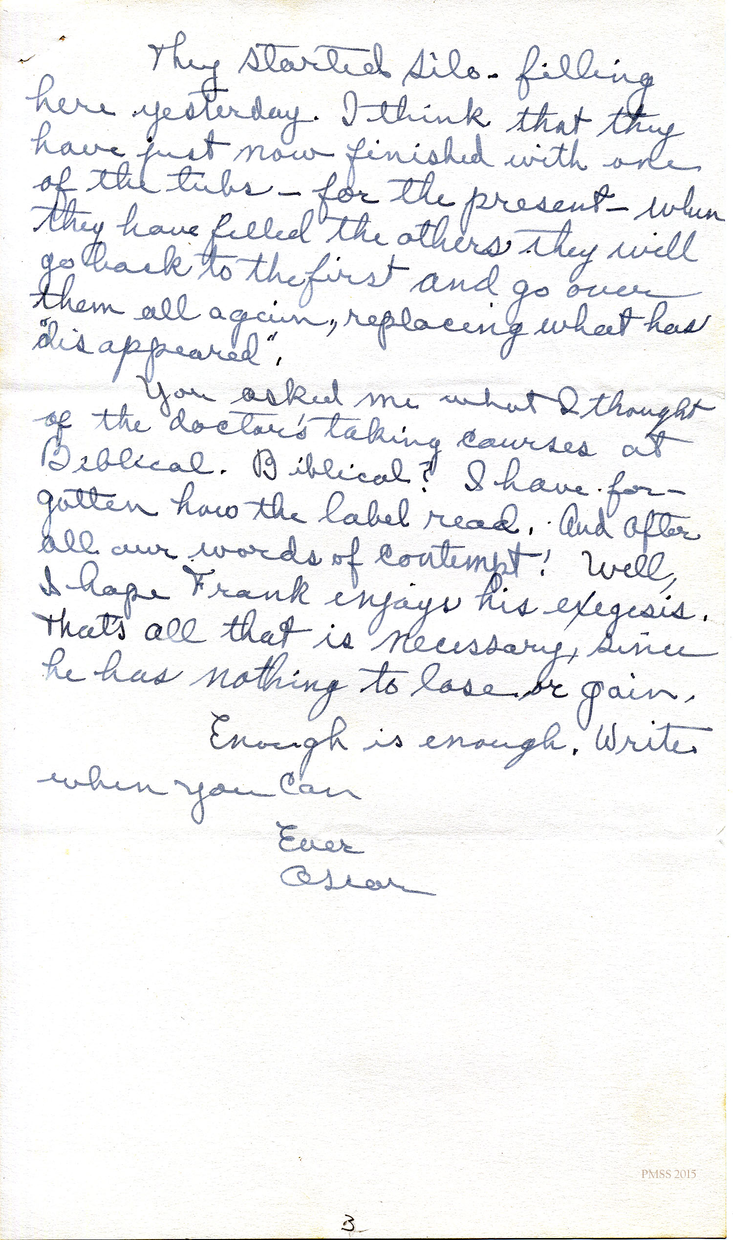 You asked me what I thought of the doctor’s taking courses at Biblical. Biblical? I have forgotten how the label read. and after all our words of contempt! Well, I hope Frank enjoys his exegesis. That’s all that is necessary, since he has nothing to lose or gain.