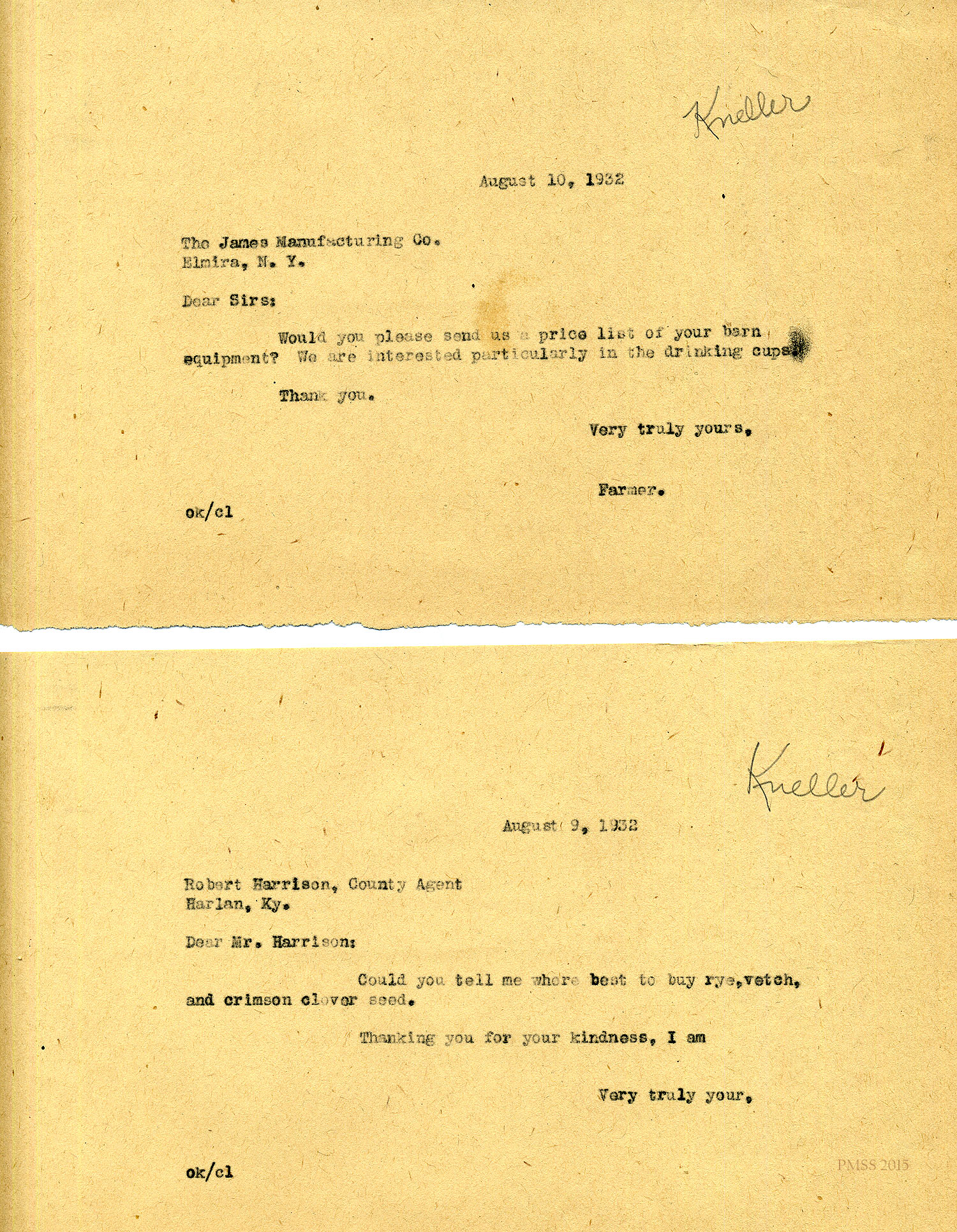 Oscar Kneller Correspondence consists of images of Kneller’s business letters and personal letters between Kneller and Glyn Morris, Director of Pine Mountain Settlement School, written from 1932 to 1936.