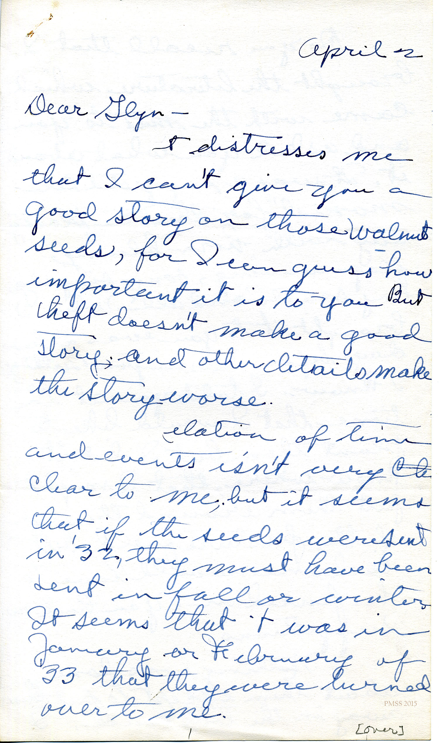 Relation[?] of time and events isn’t very clear to me, but it seems that if the seeds were sent in ’32, they must have been sent in fall or winter. It seems that it was in January or February of ’33 that they were turned over to me.