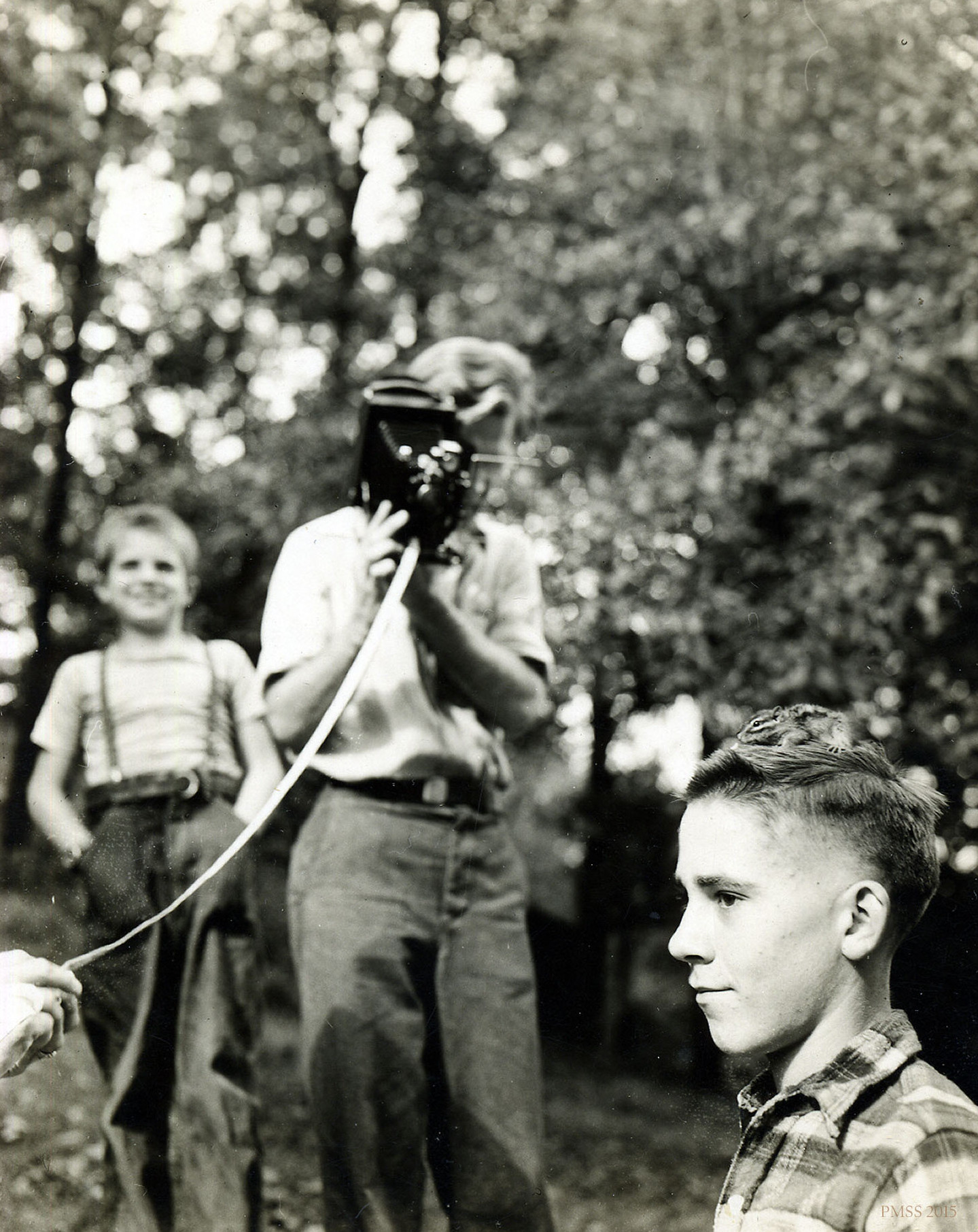 Photograph of Dodd with camera and students.