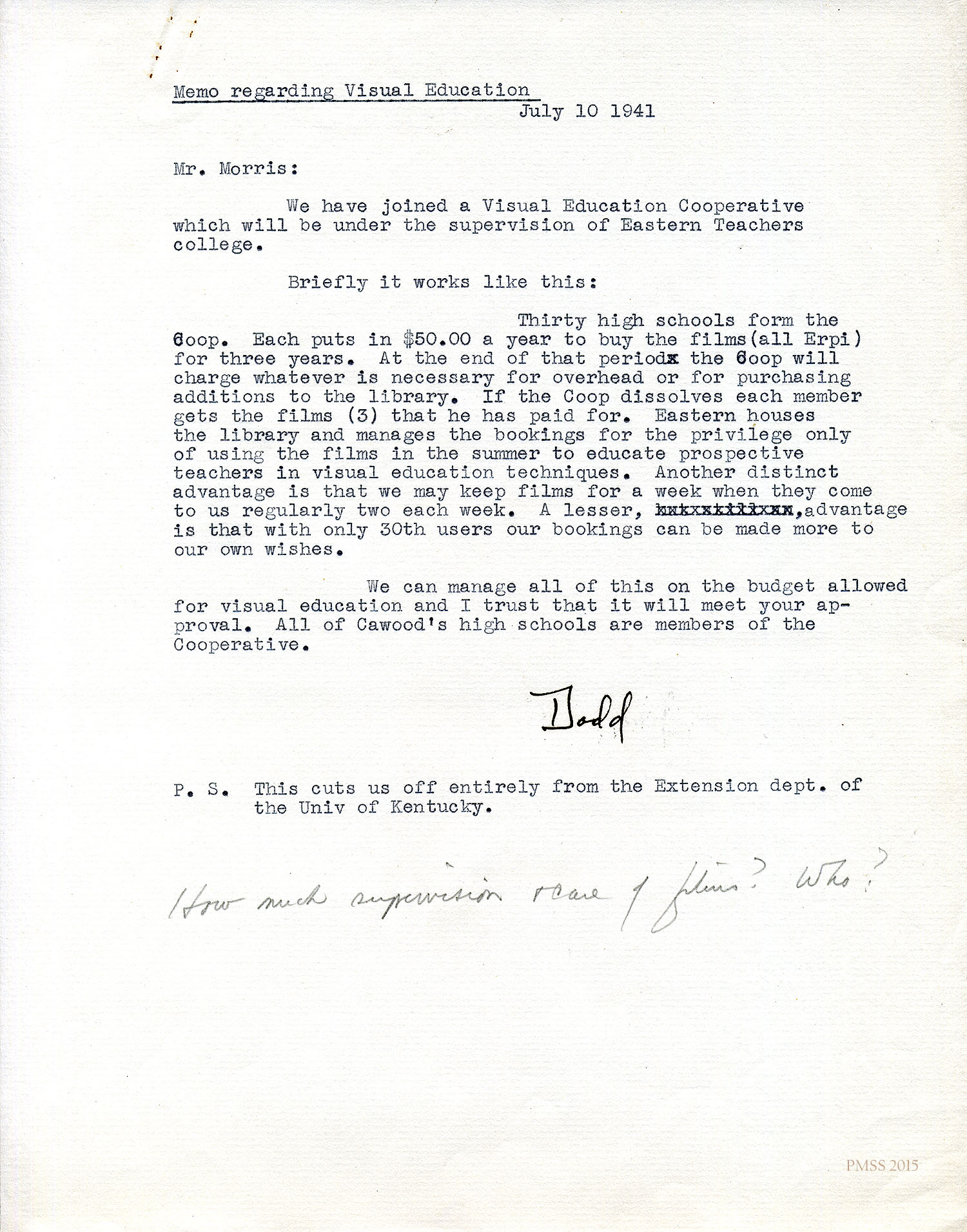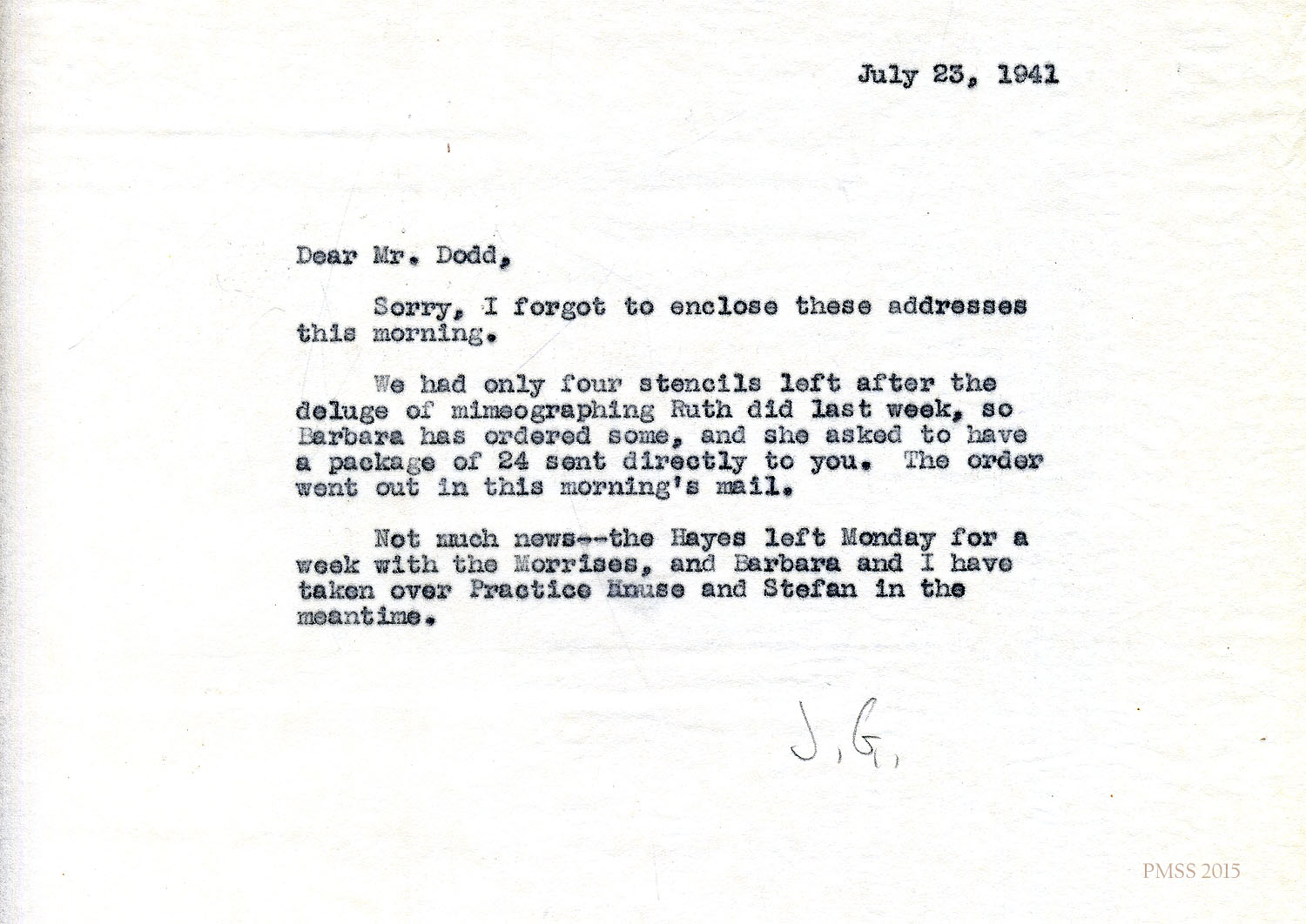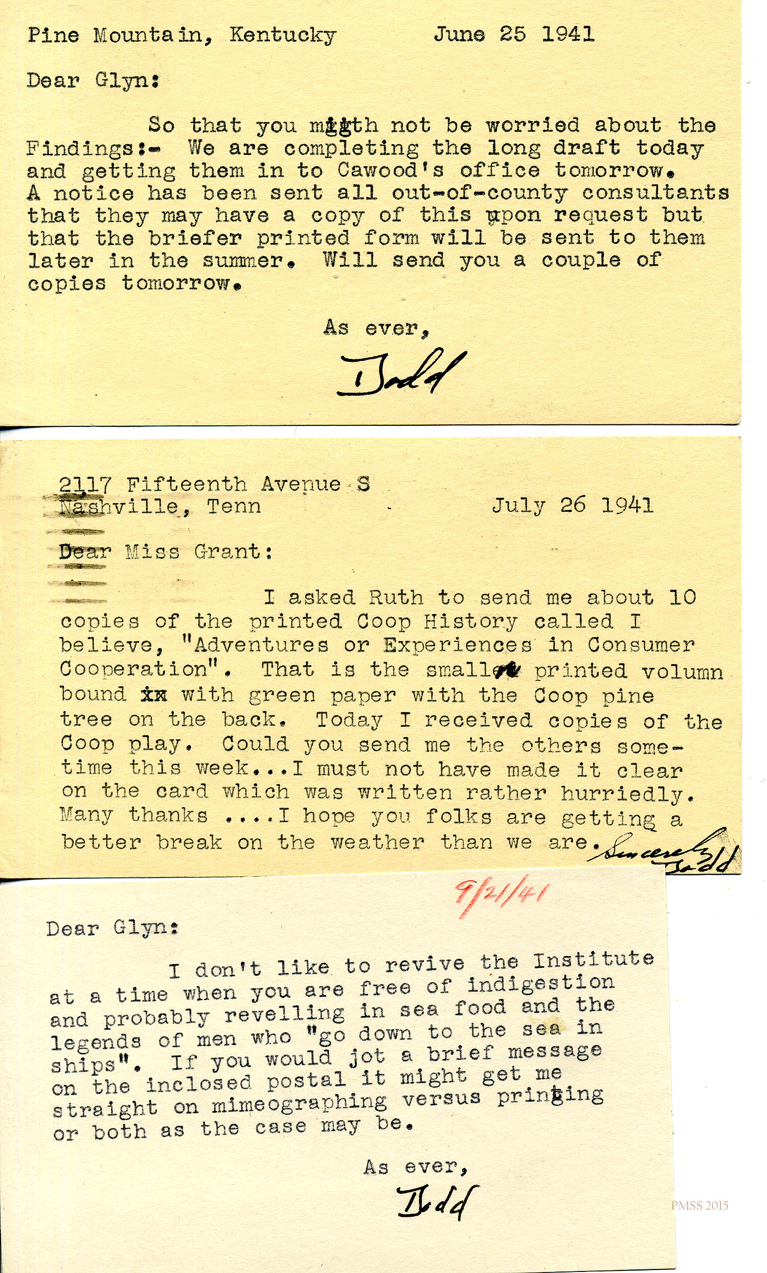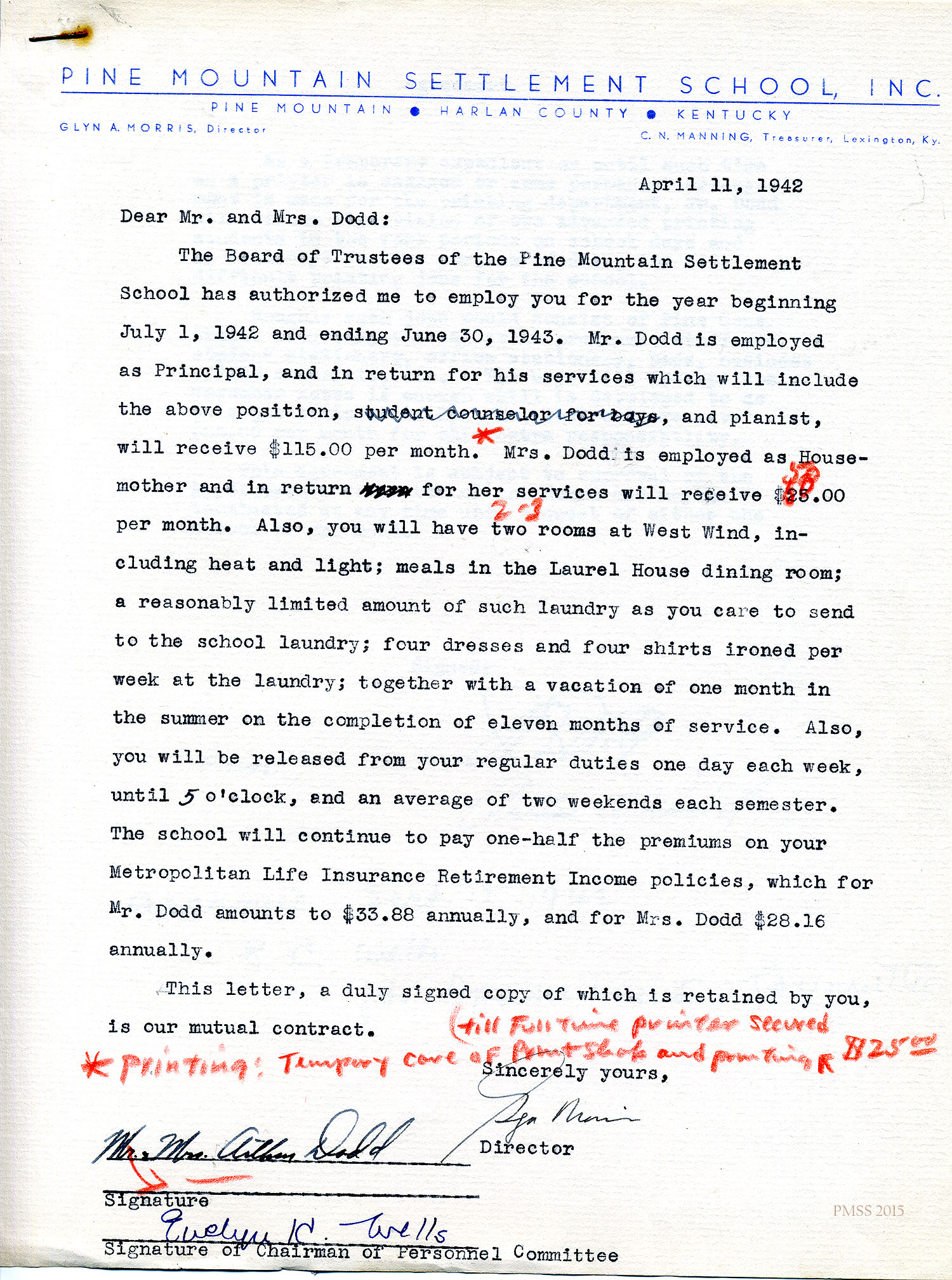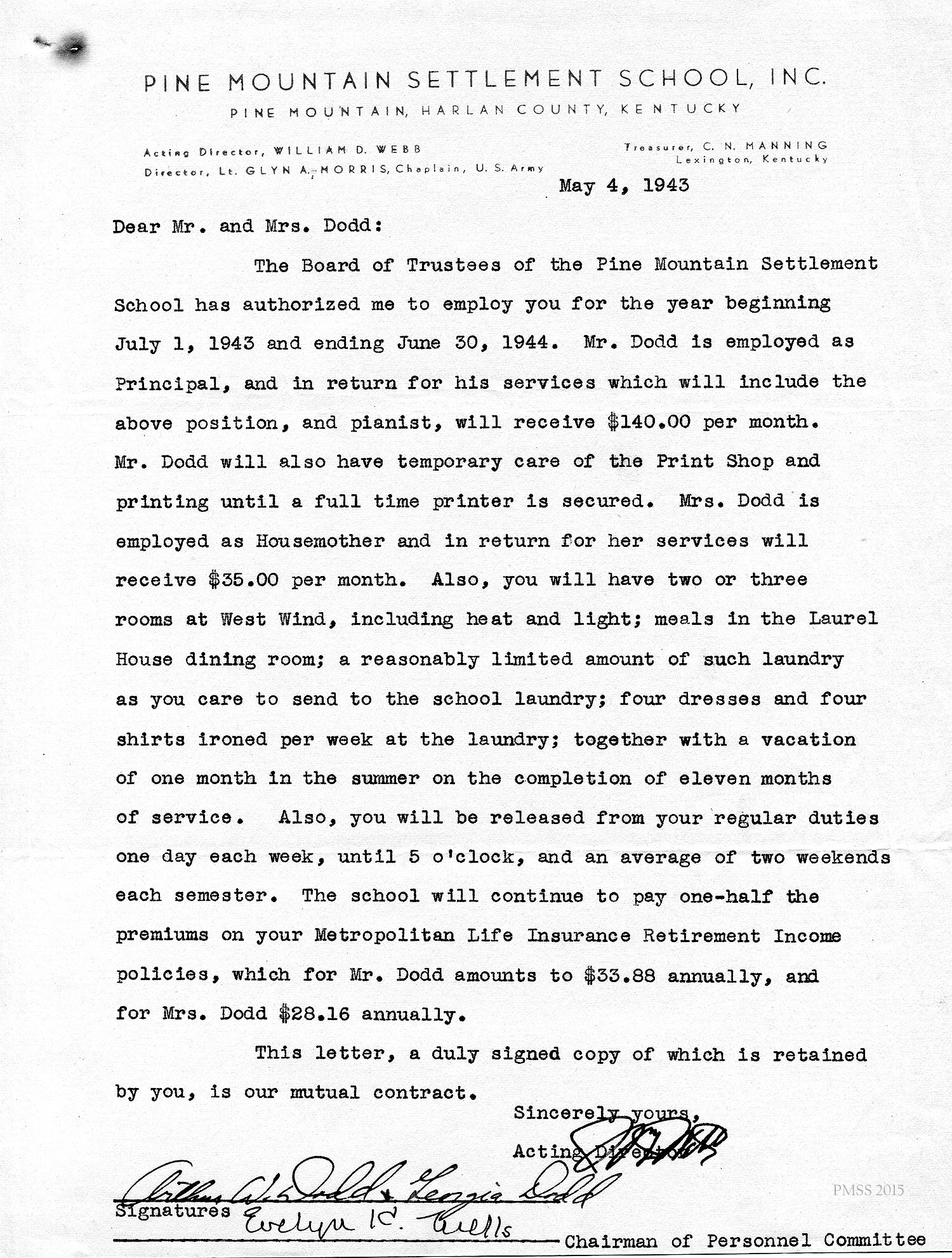 Glyn Morris to Mr. and Mrs. Dodd – PMSS contract for 1942-1943.[045] Oct 30, 1941